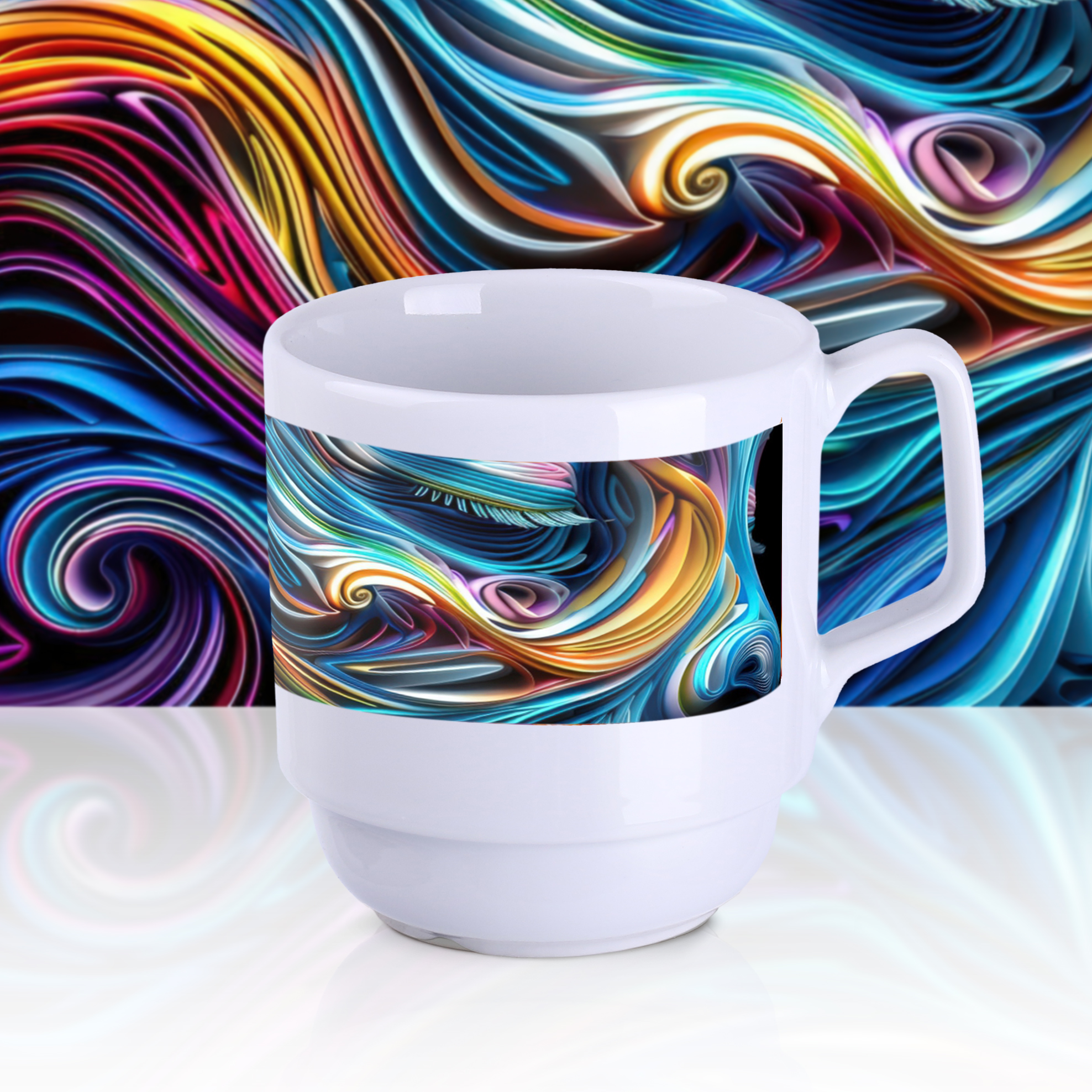 Aufdruck auf jeder Tasse, unabhängig von der Form.