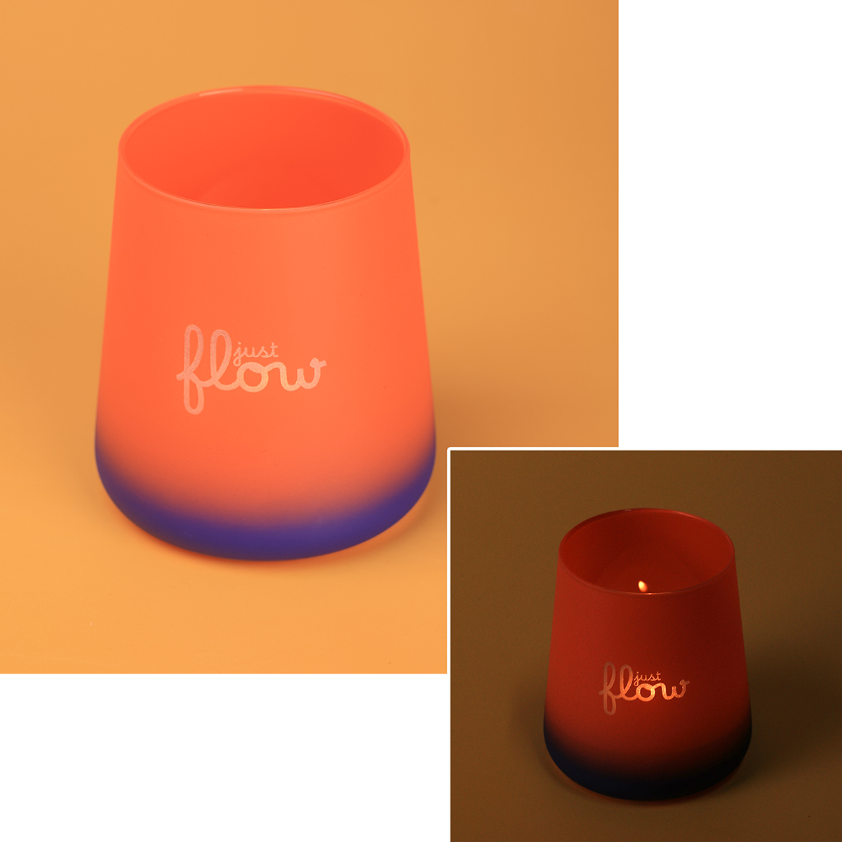 Diese Glaslaterne ist in zwei sich überlagernden Farben getönt, wodurch ein moderner und raffinierter Ombré-Effekt entsteht. Das Design wird durch feine, präzise Gravuren ergänzt, die der Dekoration im beleuchteten Zustand einen einzigartigen und luxuriösen Charakter verleihen.