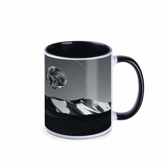 Ein origineller Sublimationsbecher mit unverwechselbaren Farben. Er hat eine farbige Innenseite in verschiedenen Farbtönen und einen passenden farbigen Henkel. Er kann in fotografischer Qualität bedruckt werden.