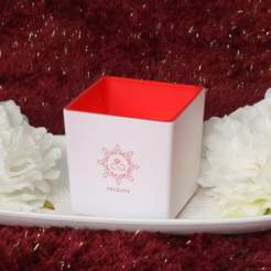 Designerlaterne mit origineller Form. Sie enthält einen Teelichteinsatz aus Sojawachs, der natürlich, sicher und frei von schädlichen Substanzen beim Abbrennen ist.