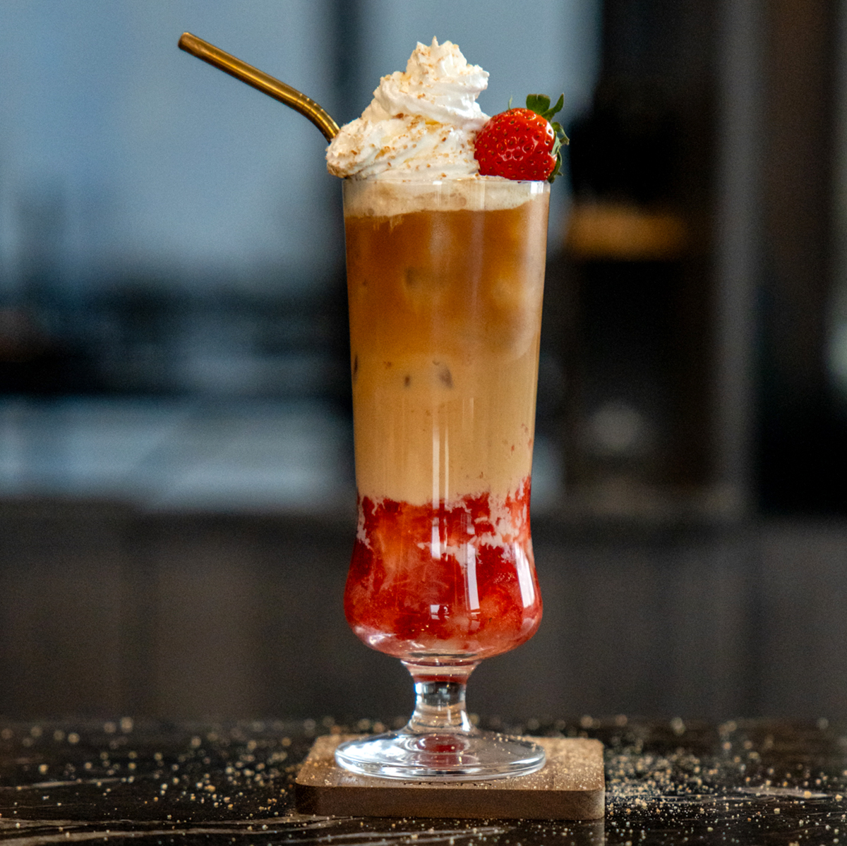 Ein Glas mit einer schlanken, hohen Form, das für Cocktails und andere Getränke bestimmt ist. Es hat einen praktischen Fuß. Hergestellt aus Glas europäischer Herkunft.