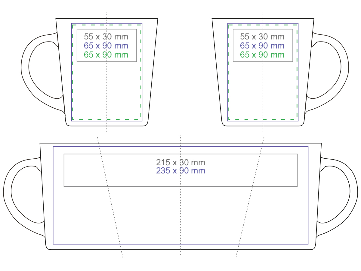 Ein klassischer Porzellanbecher mit vielen Möglichkeiten zur individuellen Gestaltung. Die großen geraden Wände bringen den Aufdruck perfekt zur Geltung.