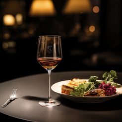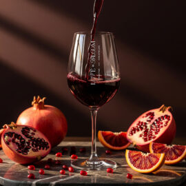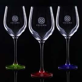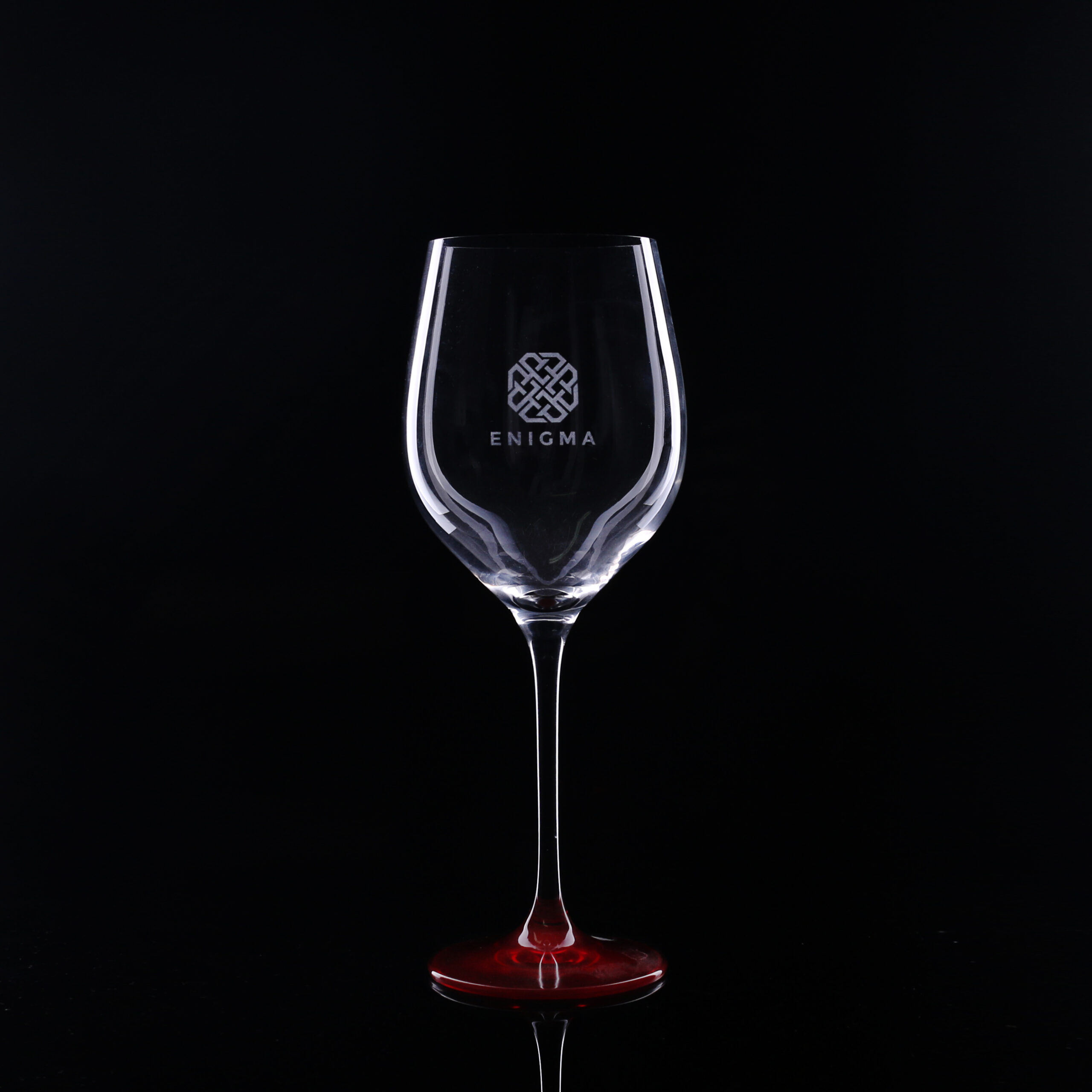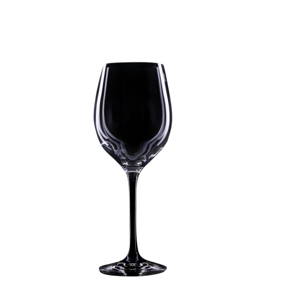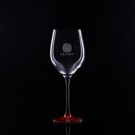 Ein dezentes und elegantes Rotweinglas. Es sieht toll aus mit einer zarten Dekoration, die die Noblesse des Getränks und das Prestige des Unternehmens unterstreicht.