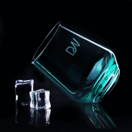 Ein stilvolles Glas mit einer faszinierenden Form und universeller Verwendung. Es ist ein interessanter Hintergrund für verschiedene Arten von Dekorationen.