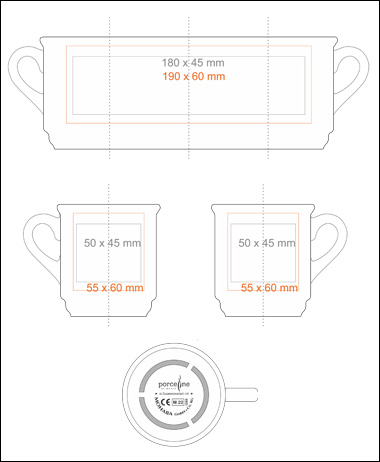 Ein für Weihnachtsmärkte entwickelter Becher. Er hat eine klassische Henkelform und einen geraden Körper, um das Stapeln zu ermöglichen. Der Becher ist mit einer Markierung versehen, auf der das Fassungsvermögen von 200 ml und das Zeichen der Vertriebsgesellschaft angegeben sind. Oz