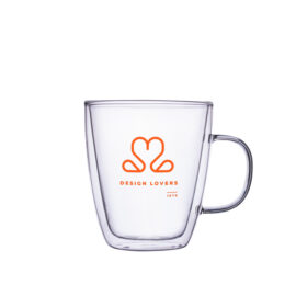 Ein interessantes Modell eines Glasbechers. Es ist aus leichtem, doppelwandigem Glas hergestellt, das einen erstaunlichen Effekt erzielt, indem es das Getränk im Inneren schweben lässt.