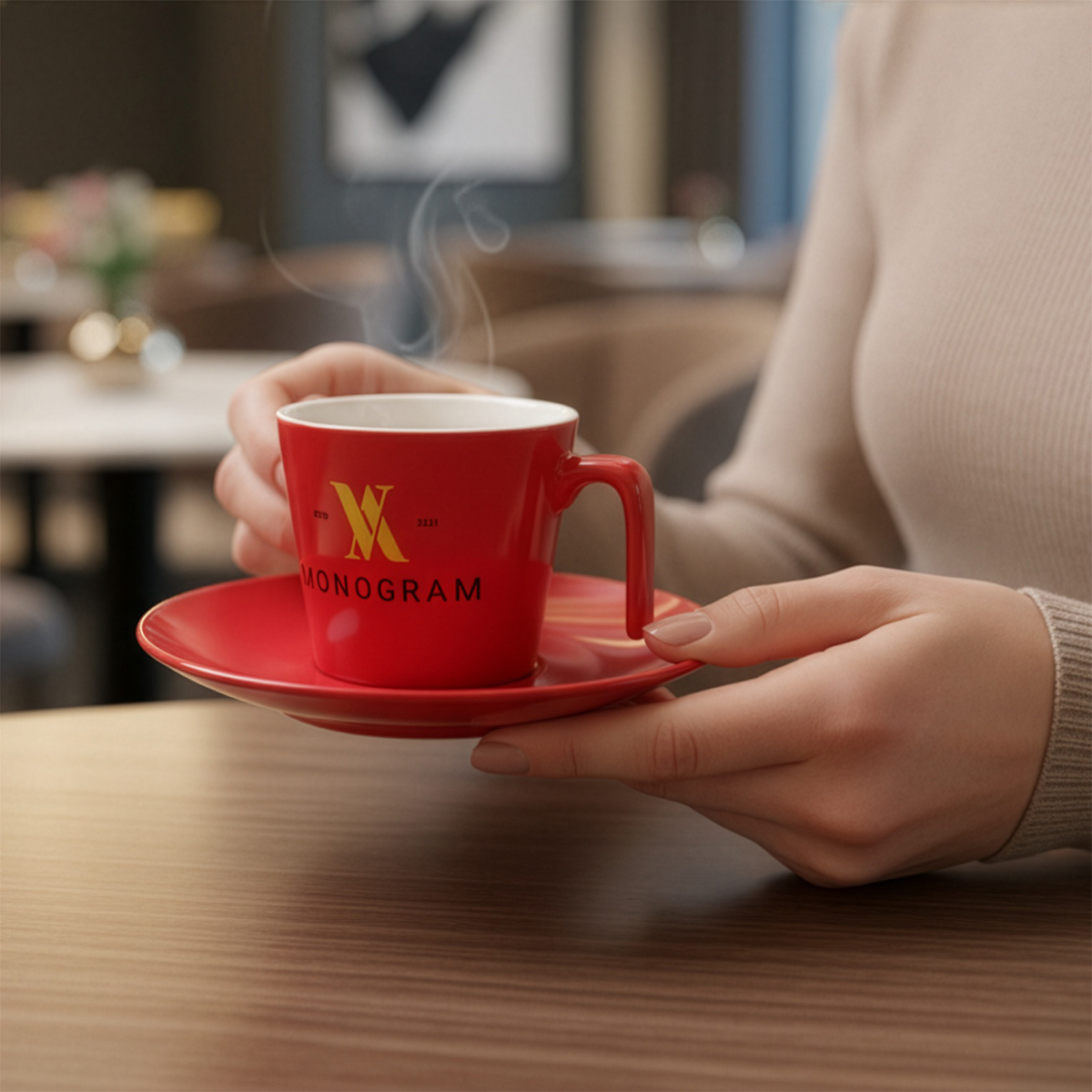 Eine moderne und stilvolle Tasse mit einem interessanten geraden Henkel. Erhältlich in Farbvarianten.
