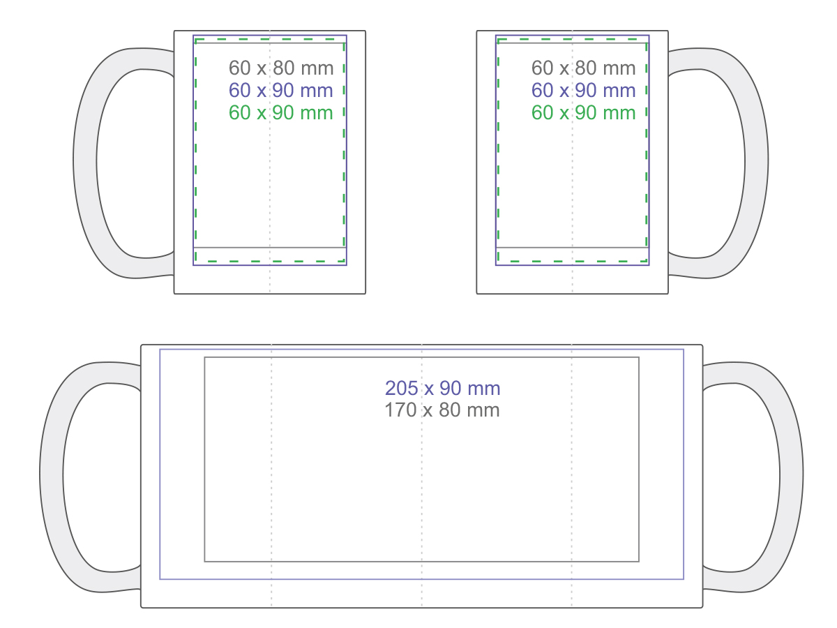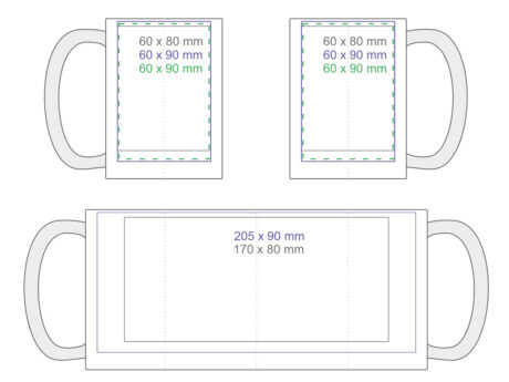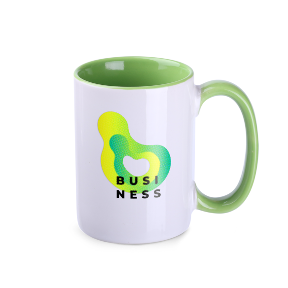 Ein moderner und origineller Becher mit geraden Wänden. Der Henkel und das Innere sind Farben erhältlich. Dank der großen Druckfläche bietet er viele Möglichkeiten, die Marke zu bewerben.