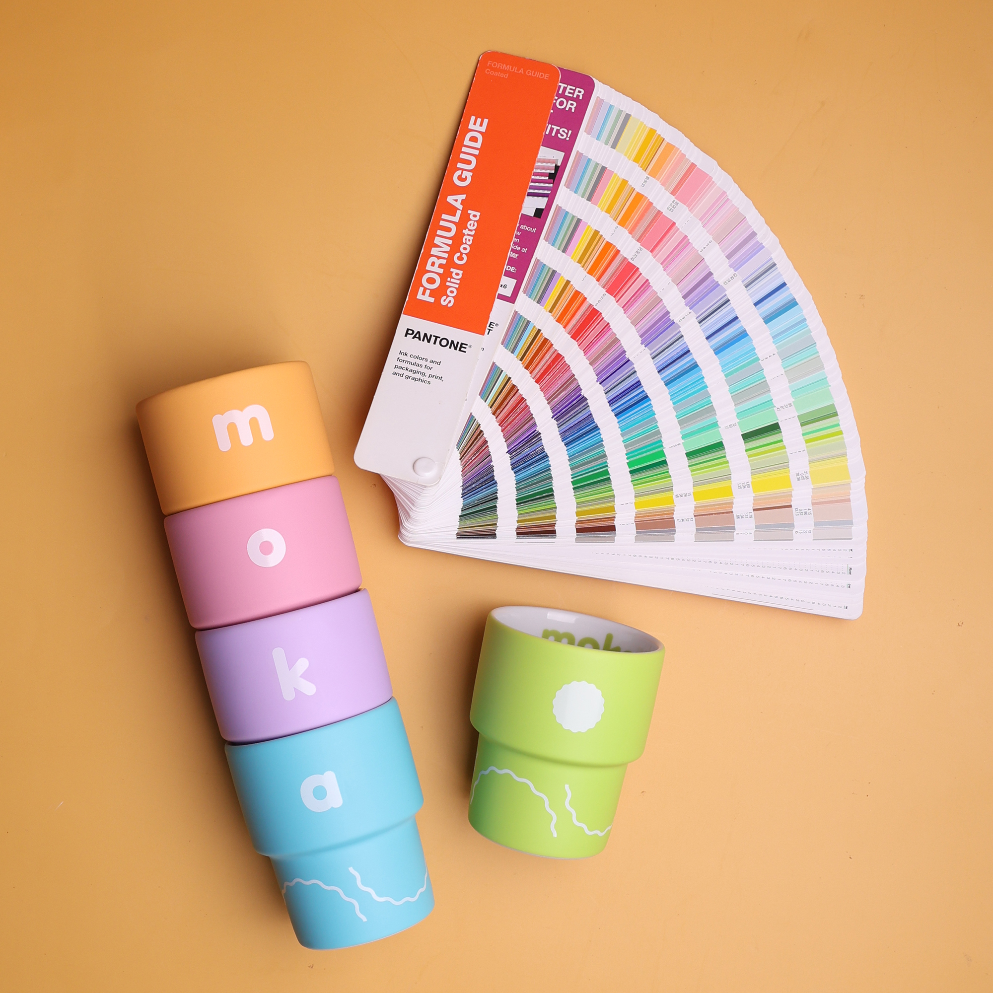 Becher im Retro-Stil, hergestellt aus europäischem Porzellan. Die einzigartige Form erlaubt es, das Produkt zu stapeln, um Platz zu sparen und interessante Sets zu bilden.