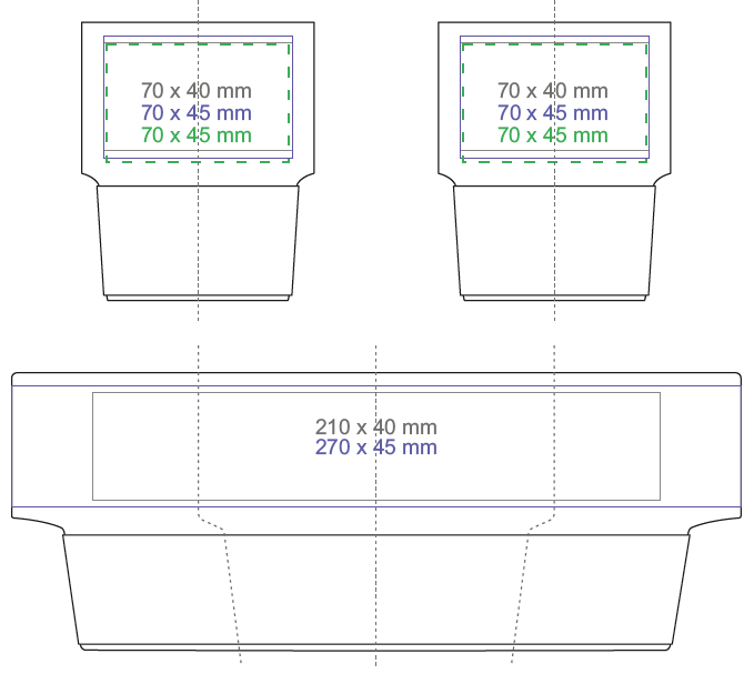 Mittelgroße Werbetasse aus Porzellan ohne Henkel. Stapelbarer Schnitt. Möglichkeit zur Anbringung zusätzlicher Isolierbänder (ein Band 40 mm breit oder 2 Bänder à 20 mm breit). Bänder in 7 Ausführungen erhältlich