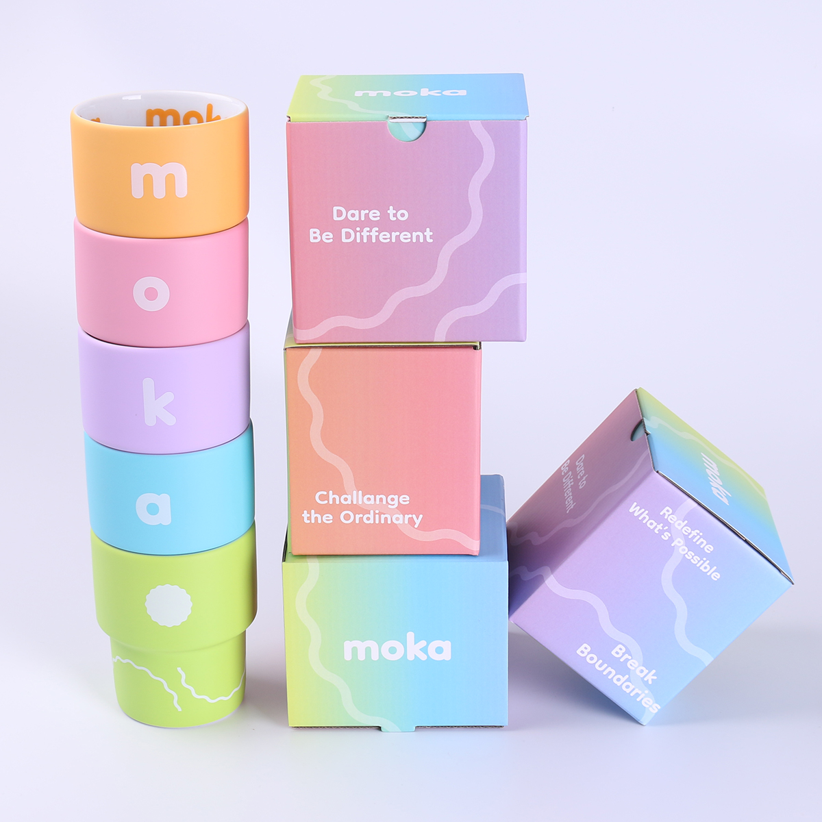 Becher im Retro-Stil, erhältlich in mehreren Farbvarianten. Seine einzigartige Form ermöglicht das Stapeln, wodurch Platz gespart und interessante Sets erstellt werden können.
