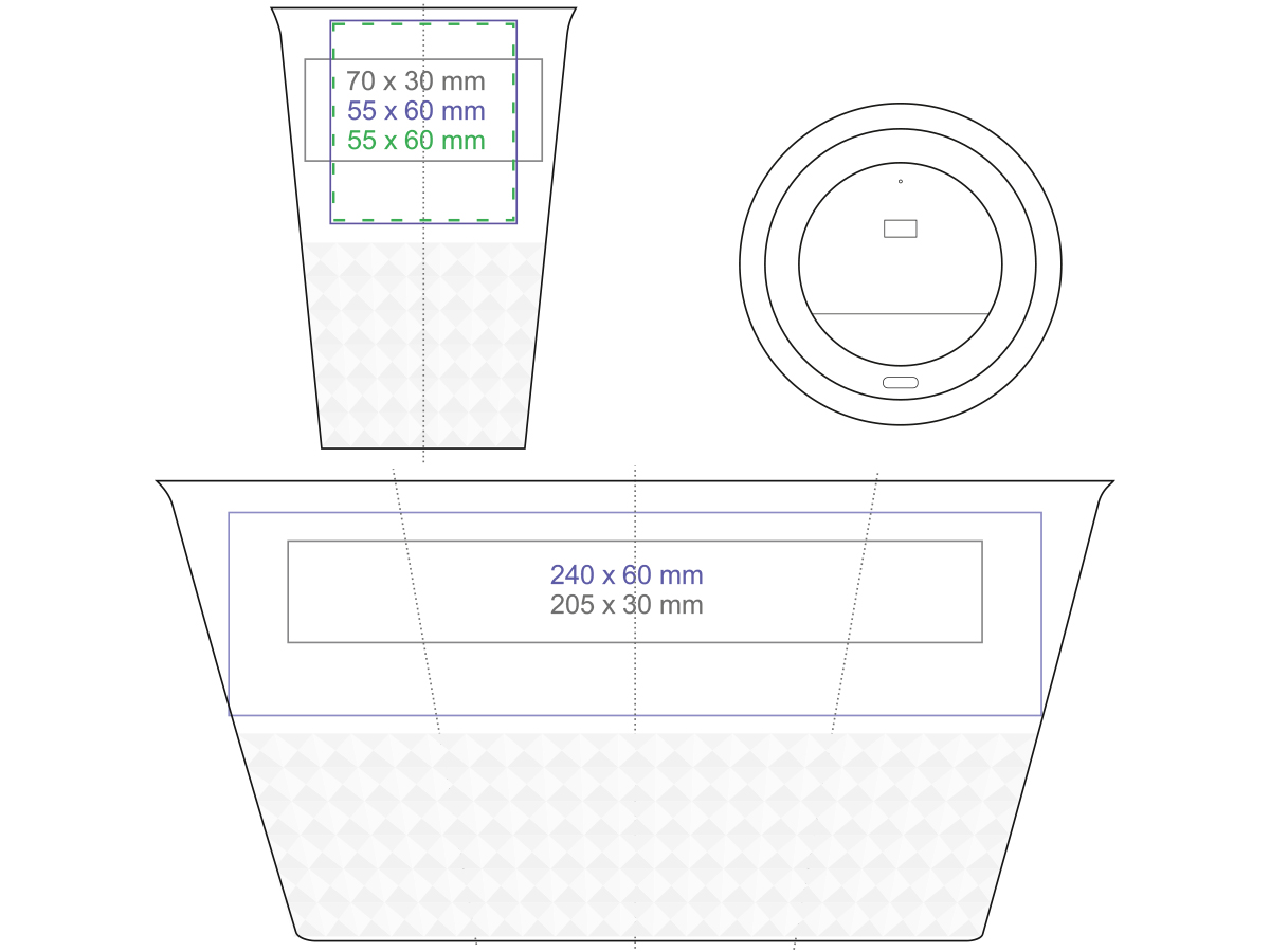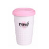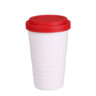 Dezentes Finish am Boden des Bechers in Form einer symmetrischen Paspelierung. Doppelwandiger Porzellanbecher für hervorragende Wärmeisolierung. Äußerst luftdichter Deckel. Ein Modell für Aktive.
