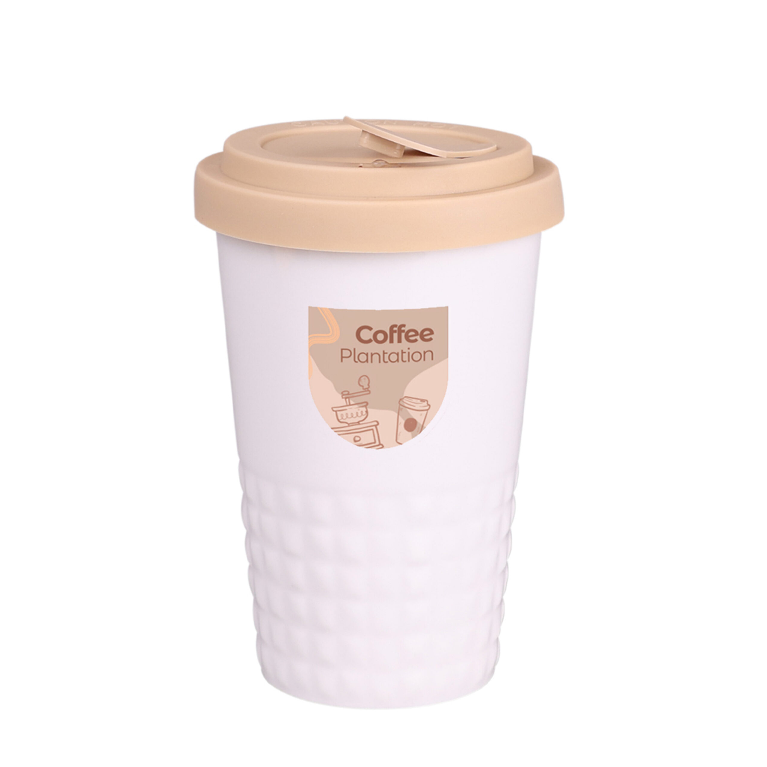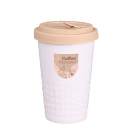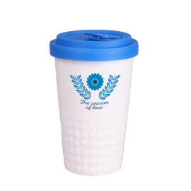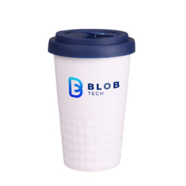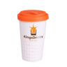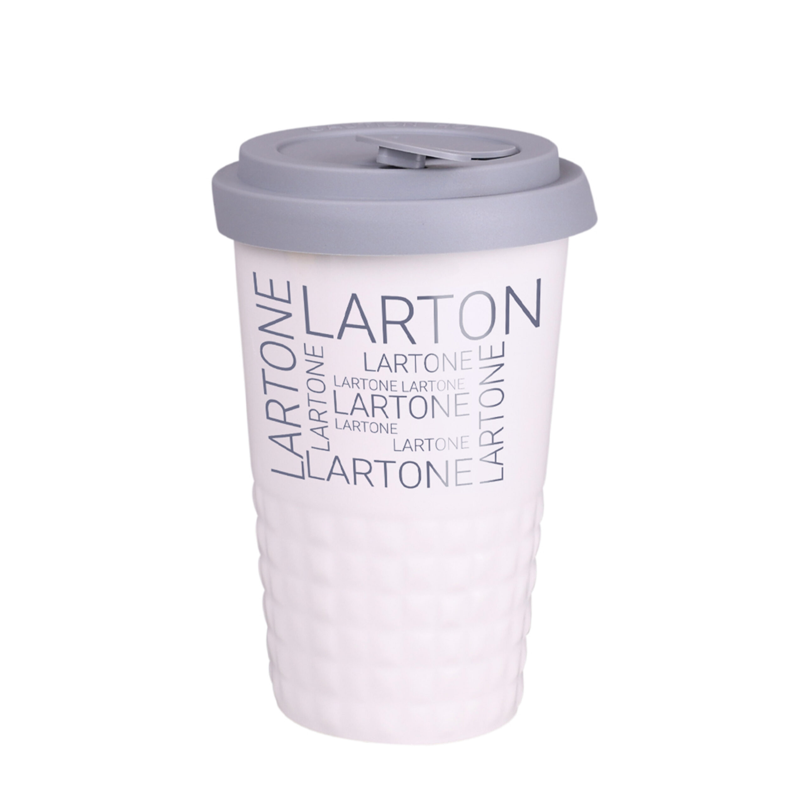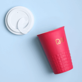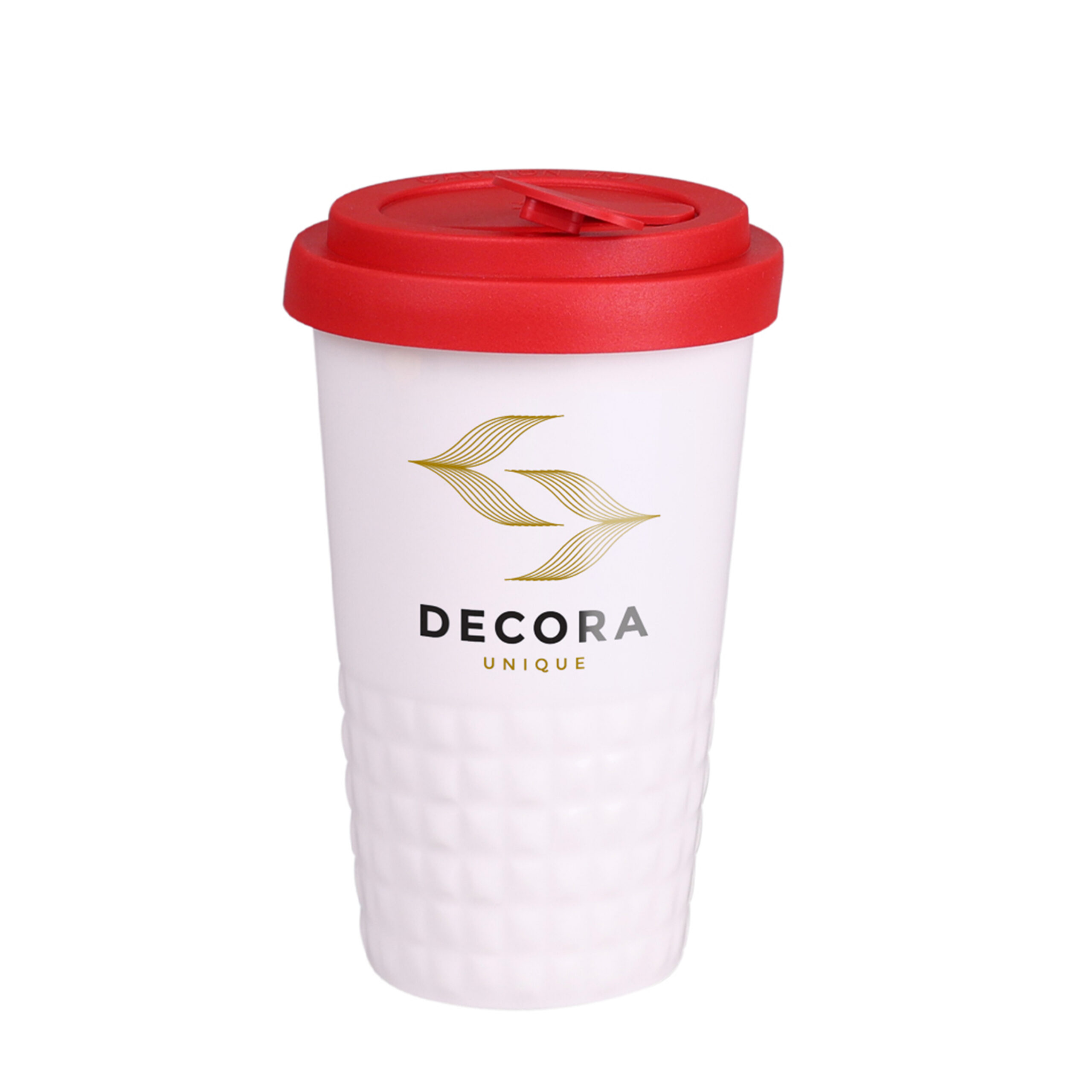 Mobiler Designer-Becher aus Porzellan. Es hat eine charakteristische Oberfläche des unteren Teils in Form einer geometrischen Struktur. Das Modell ist für aktive Menschen, Liebhaber von Ausflügen und Reisen bestimmt. Dank der seltenen inneren Struktur aus doppelten Porzellanwänden zeichnet er sich durch eine erhöhte Wärmeisolierung aus. Er hat einen Deckel mit festem Verschluss, erhältlich in Farben.