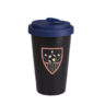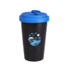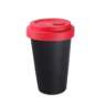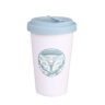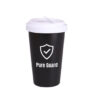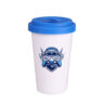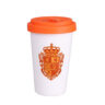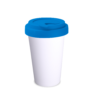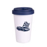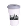 Werbebecher aus Porzellan mit einem Kunststoffdeckel und einer zusätzlichen Verschlußlasche zum Schutz vor versehentlichem Verschütten des Getränks. Das Modell ist für aktive Menschen und Liebhaber von Reisen bestimmt. Dank der seltenen inneren Struktur der doppelten Porzellanwände zeichnet sich dieser Becher durch eine erhöhte Wärmedämmung aus. Der Deckel ist in Farben erhältlich.
