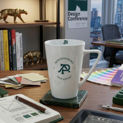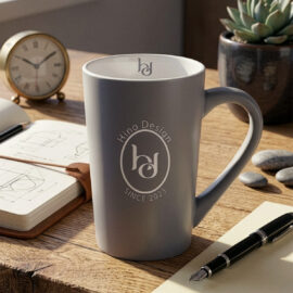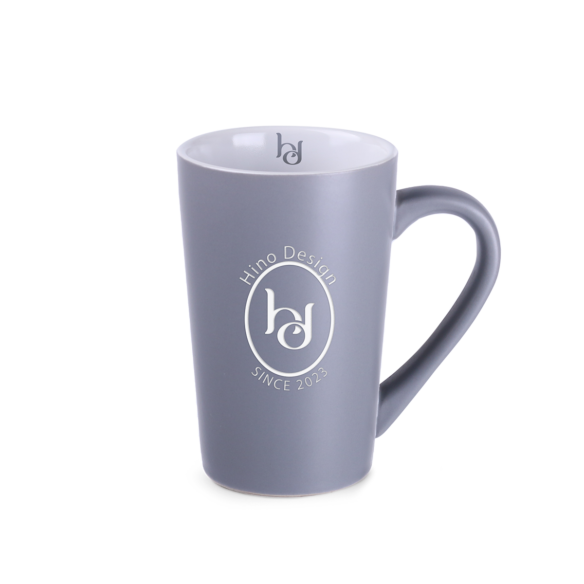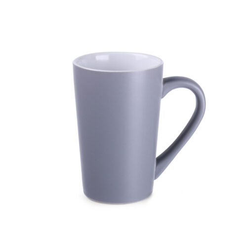 Klassischer Becher mit trapezförmiger Form und hohen Wänden. Er zeichnet sich durch eine elegante graue, matte Oberfläche aus. Er eignet sich perfekt für große Dekorationen.