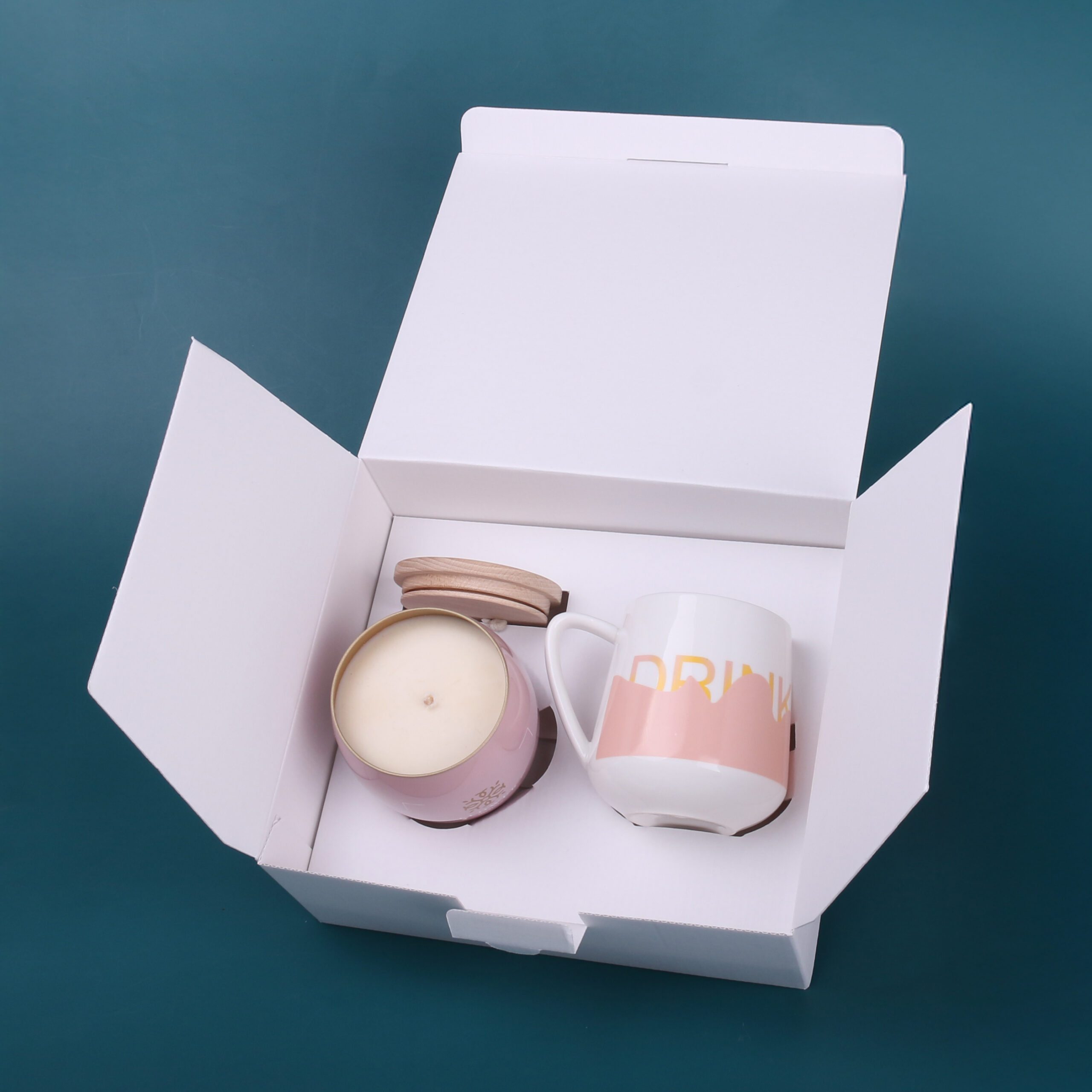 Der zarte Porzellanbecher Eris zusammen mit der individualisierbaren, umweltfreundlichen Glamour-Kerze mit Sojawachsfüllung. Die Kerze verfügt über einen Holzdeckel, der den Duft länger bewahrt und ebenfalls mit Branding versehen werden kann. Das Set ist in einer speziellen umweltfreundlichen Snowy-Verpackung verpackt und mit einer eleganten personalisierten Banderole versehen. DIE DARGESTELLTE VERZIERUNG DIENT NUR ZUR VERANSCHAULICHUNG UND IST NICHT IM PRODUKTPREIS ENTHALTEN. DAS SET IST IN EINER SPEZIELLEN SNOWY-VERPACKUNG MIT EINER AUSGEWÄHLTEN VERZIERUNGSOPTION ERHÄLTLICH.