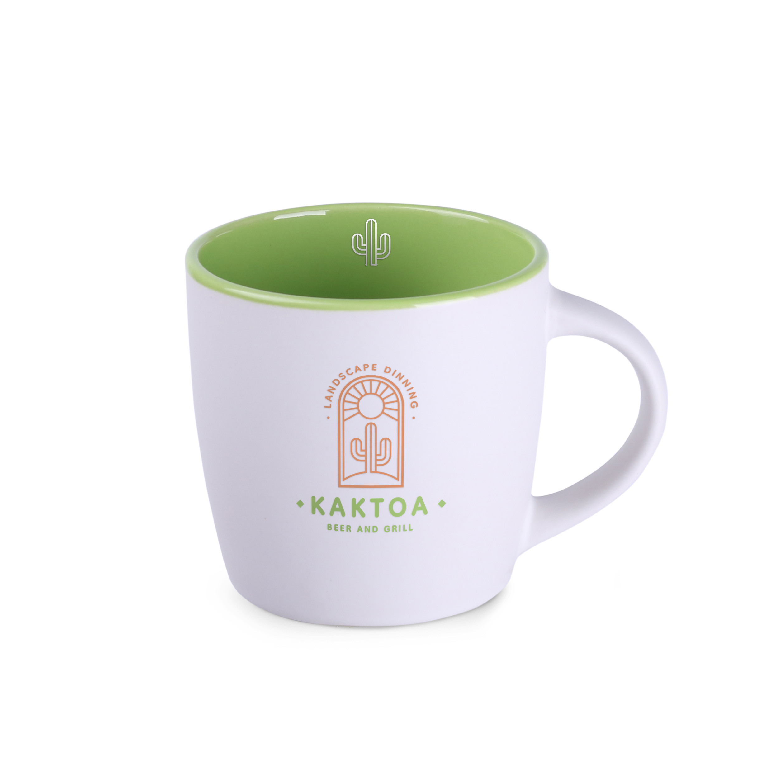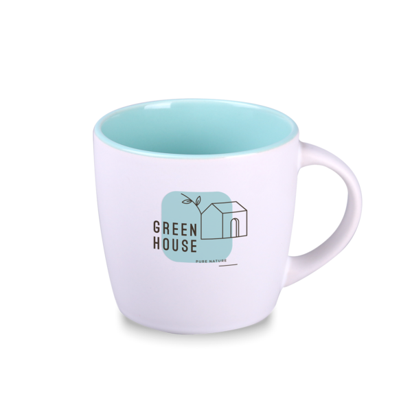 Ein moderner Werbebecher mit einer markanten runden Form. Die weiße, matte Glasur auf der Außenseite harmoniert perfekt mit der farbigen, glänzenden Innenseite. Der Becher ist in 7 Farbvarianten erhältlich. Der kleine Bruder des Bestsellers Handy Supreme.
