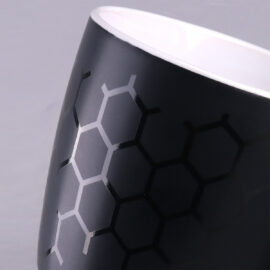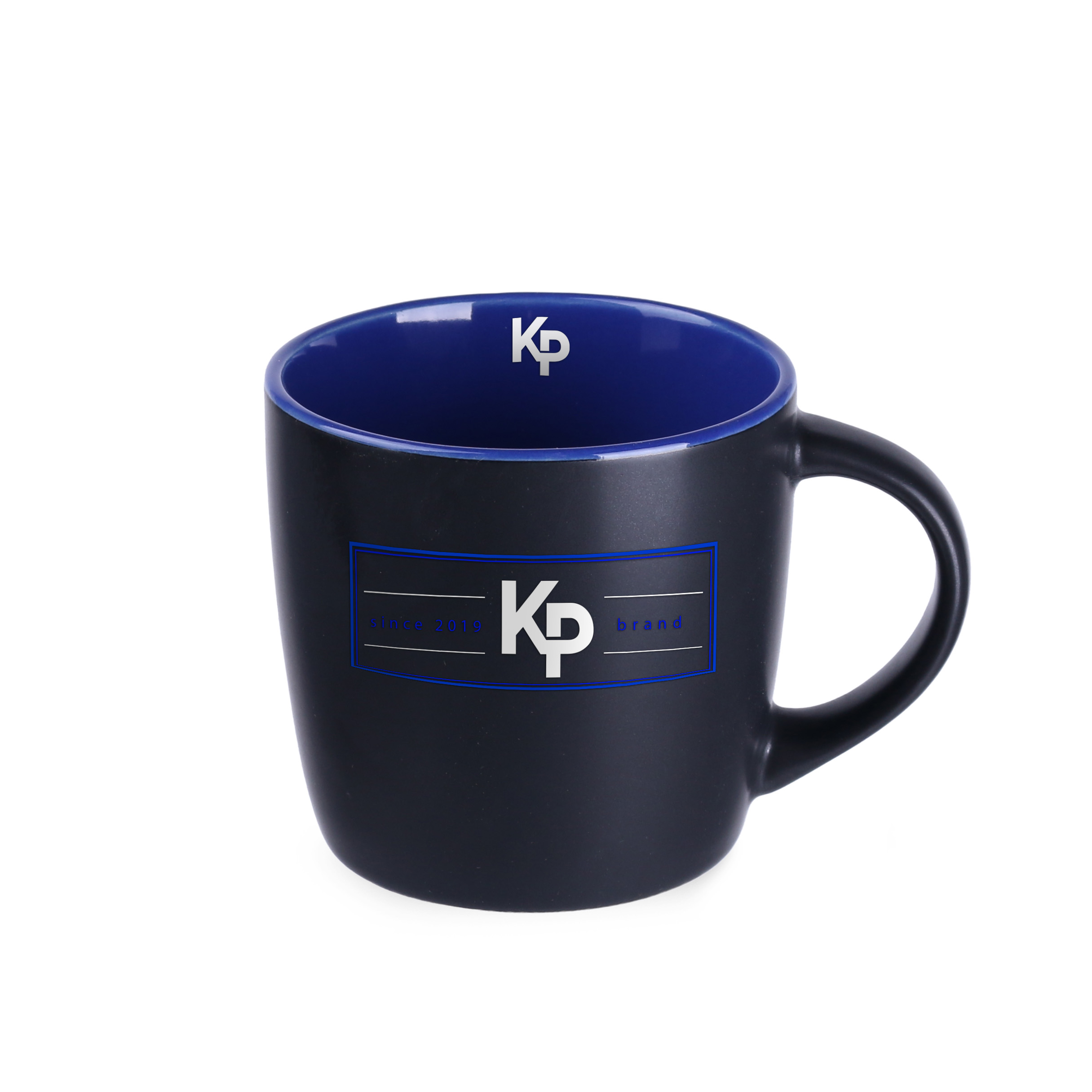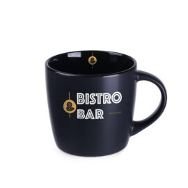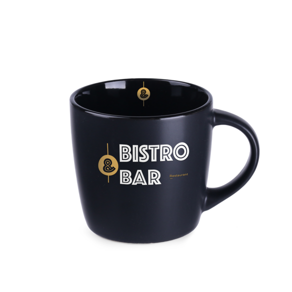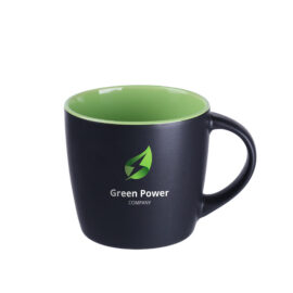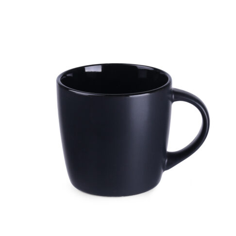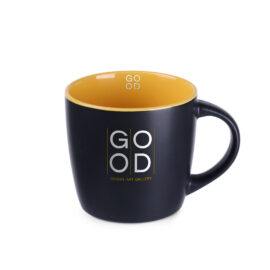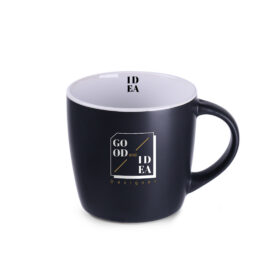 Ein sehr beliebter Werbebecher mit einer klassischen, runden Form und einer modernen, matten Glasur. Die glänzende, farbige Innenseite steht in perfektem Kontrast zu der schwarzen, satinierten Oberfläche auf der Außenseite. Der Becher ist in einer Vielzahl von Farbvarianten erhältlich.