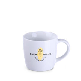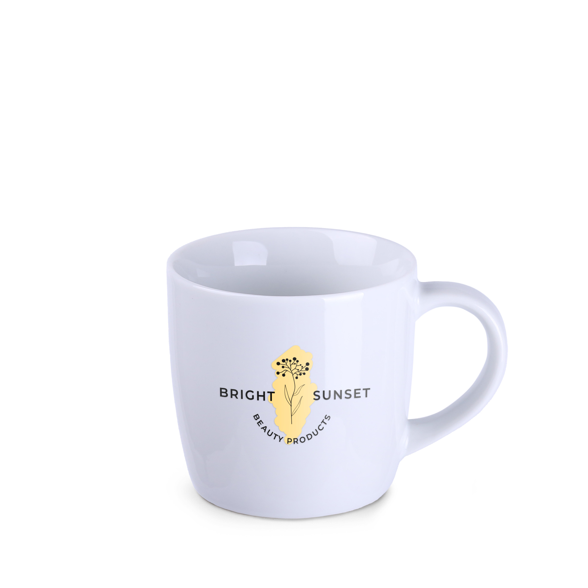 Eine kultige Werbetasse mit klassischen, abgerundeten Formen.