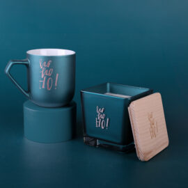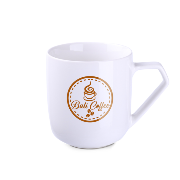 Eine zylinderförmiger Porzellanbecher mit einem originellen Henkel. In Kombination mit der Dekoration hebt er die Marke eindeutig von der Konkurrenz ab.