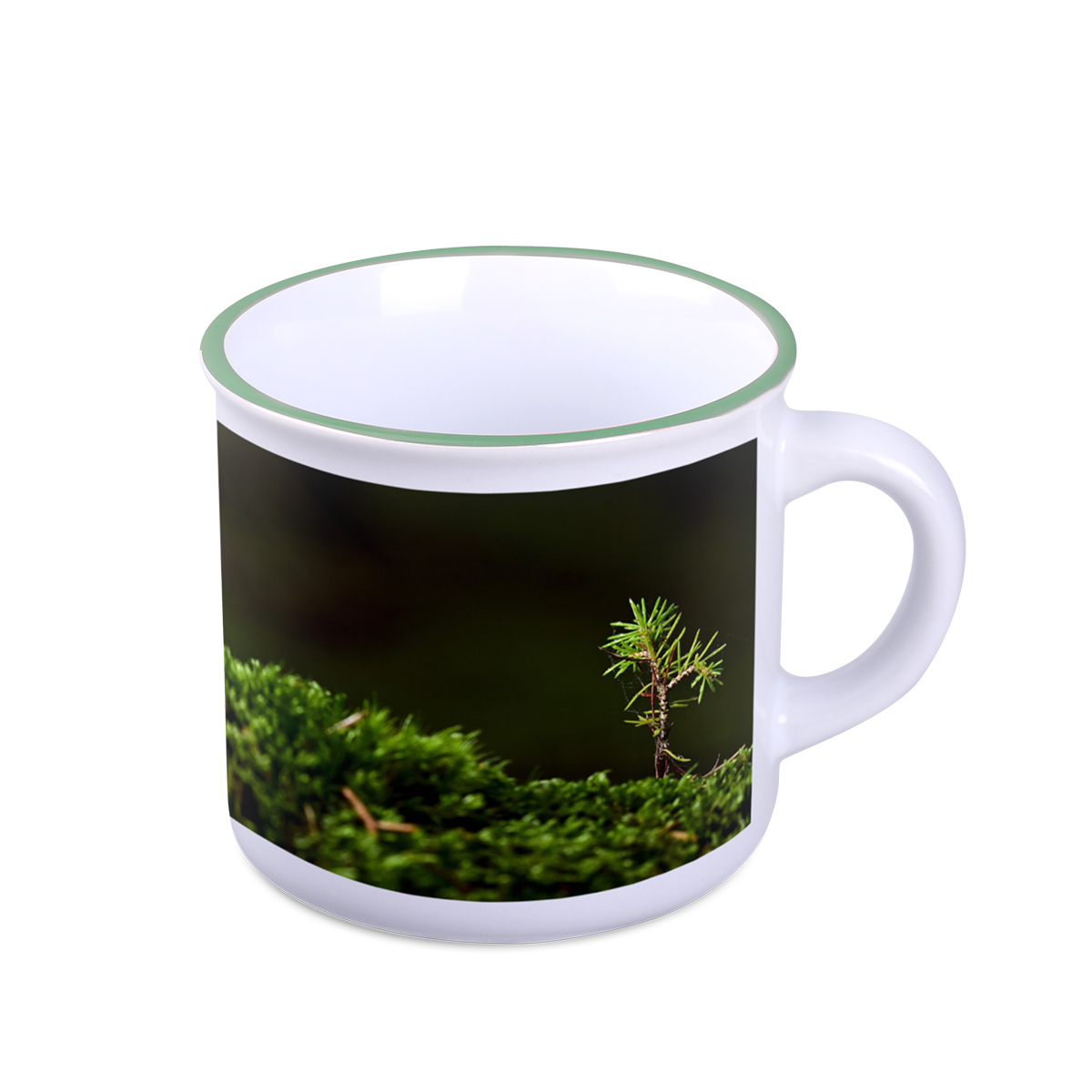 Ein Sublimationsbecher mit einem minimalistischen und modernen Design. Die Innenseite ist in verschiedenen Farbtönen erhältlich. Er kann in fotografischer Qualität bedruckt werden. Ein interessanter Akzent in Form eines farbigen Becherrandes, der in drei modischen Farben erhältlich ist.