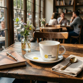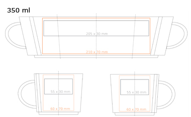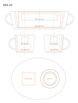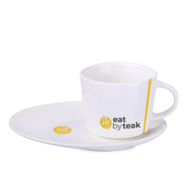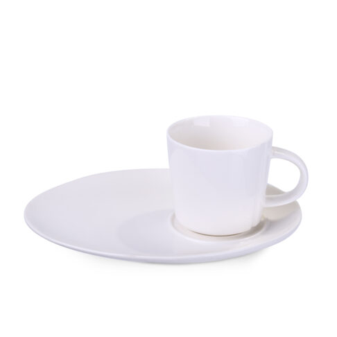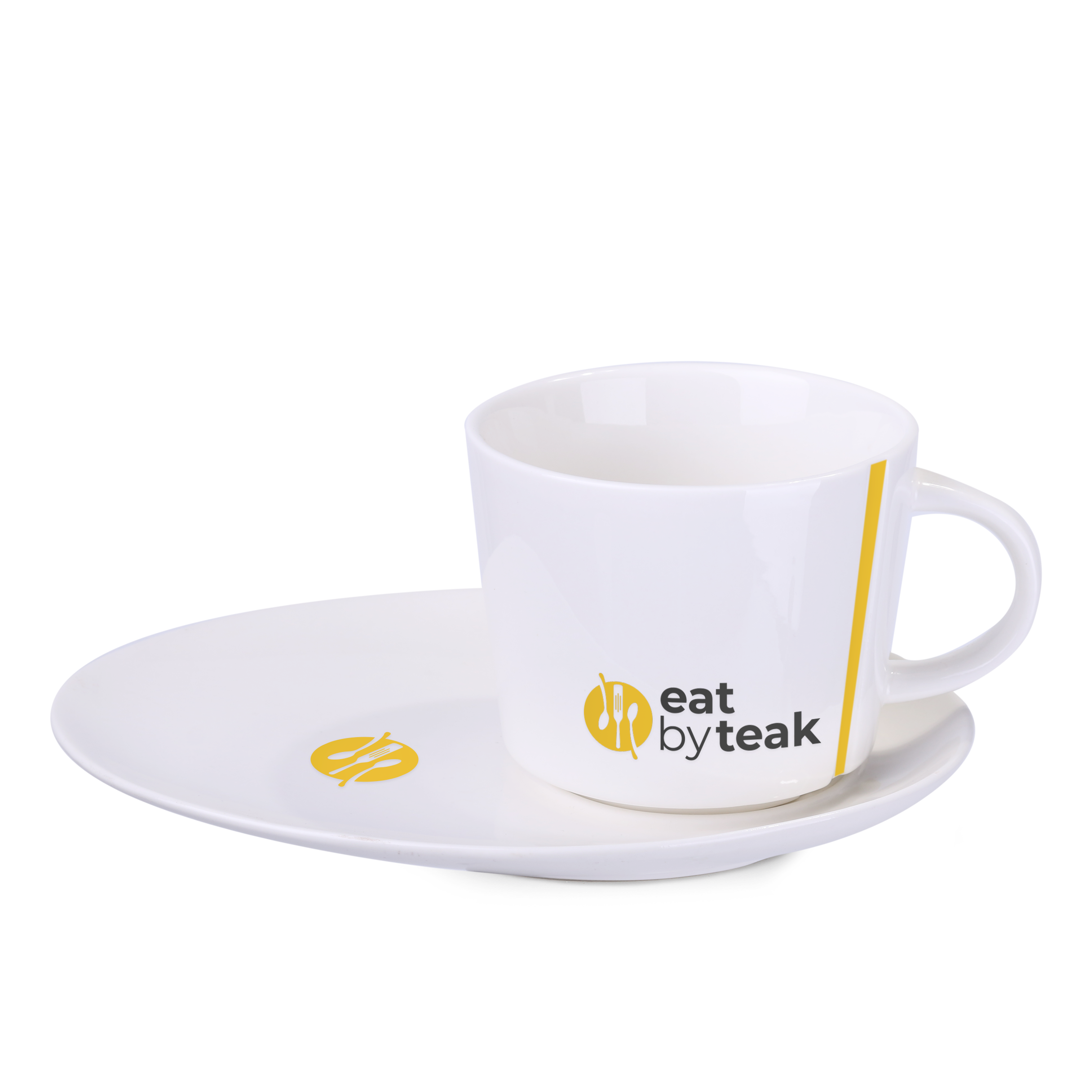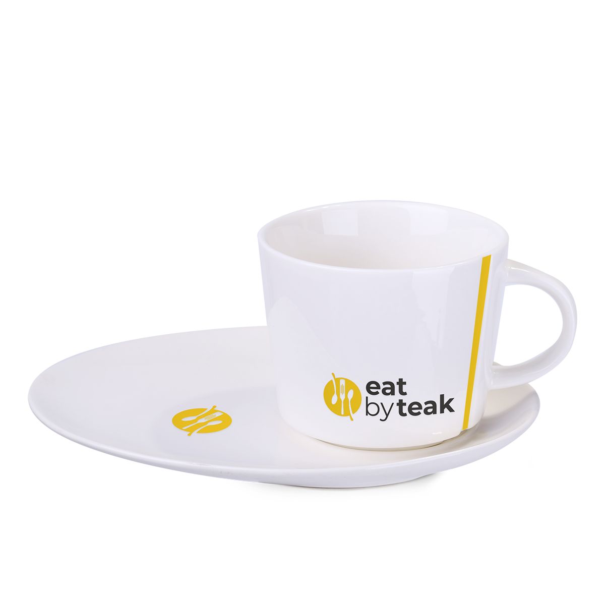 Originelle Tasse aus Porzellan. Sie zeichnet sich durch eine interessante Prägung auf beiden Seiten des Henkels aus. Sie unterstreicht perfekt die einzigartige Markenbotschaft.