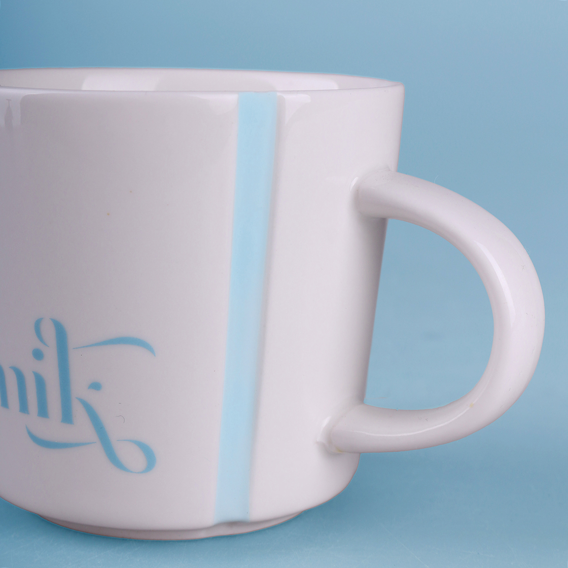 Modell aus Porzellan. Große, geräumige, ergonomische Tasse. Unterscheidet sich durch die Prägung auf beiden Seiten des Henkels. Ein Design, das die Originalität des Benutzers unterstreicht.