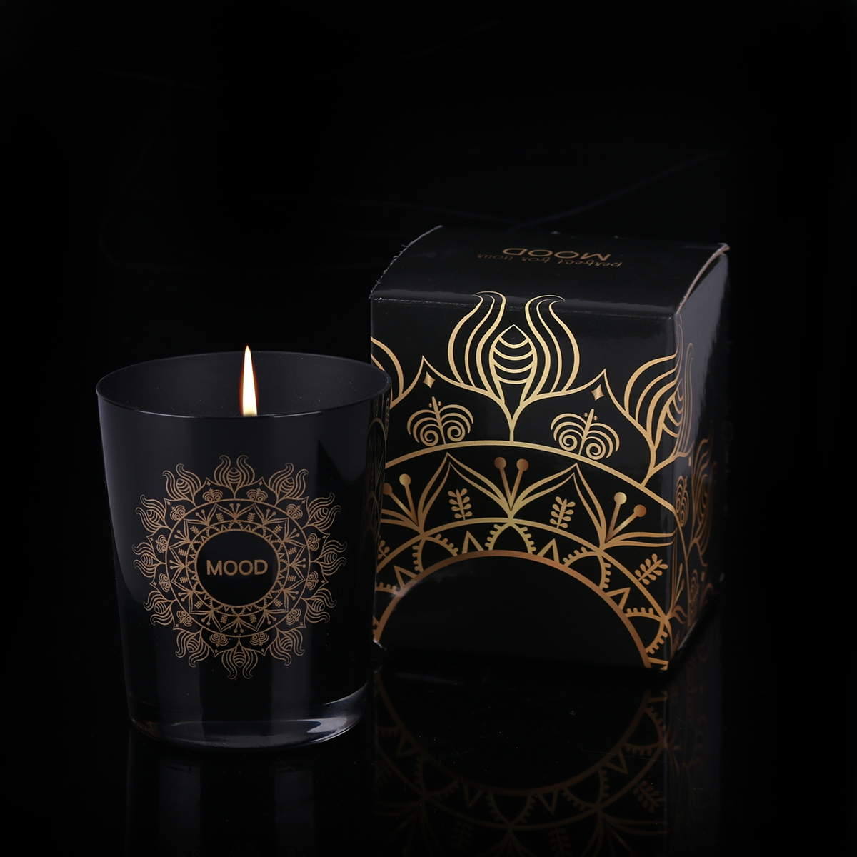 Schlichte Eleganz zur Verschönerung Ihrer Marke. Eine edle LUMENA-Kerze mit harmonischen Wänden, deren Dekoration die Position der beworbenen Marke auf äußerst subtile und zugleich wirkungsvolle Weise hervorheben wird.