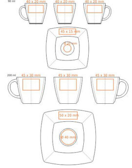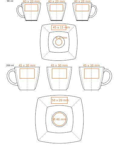 Werbetasse aus Porzellan, erhältlich in zwei Größen. Eine Besonderheit dieses Schliffs sind die zarten Ränder, die im unteren Teil sichtbar sind.