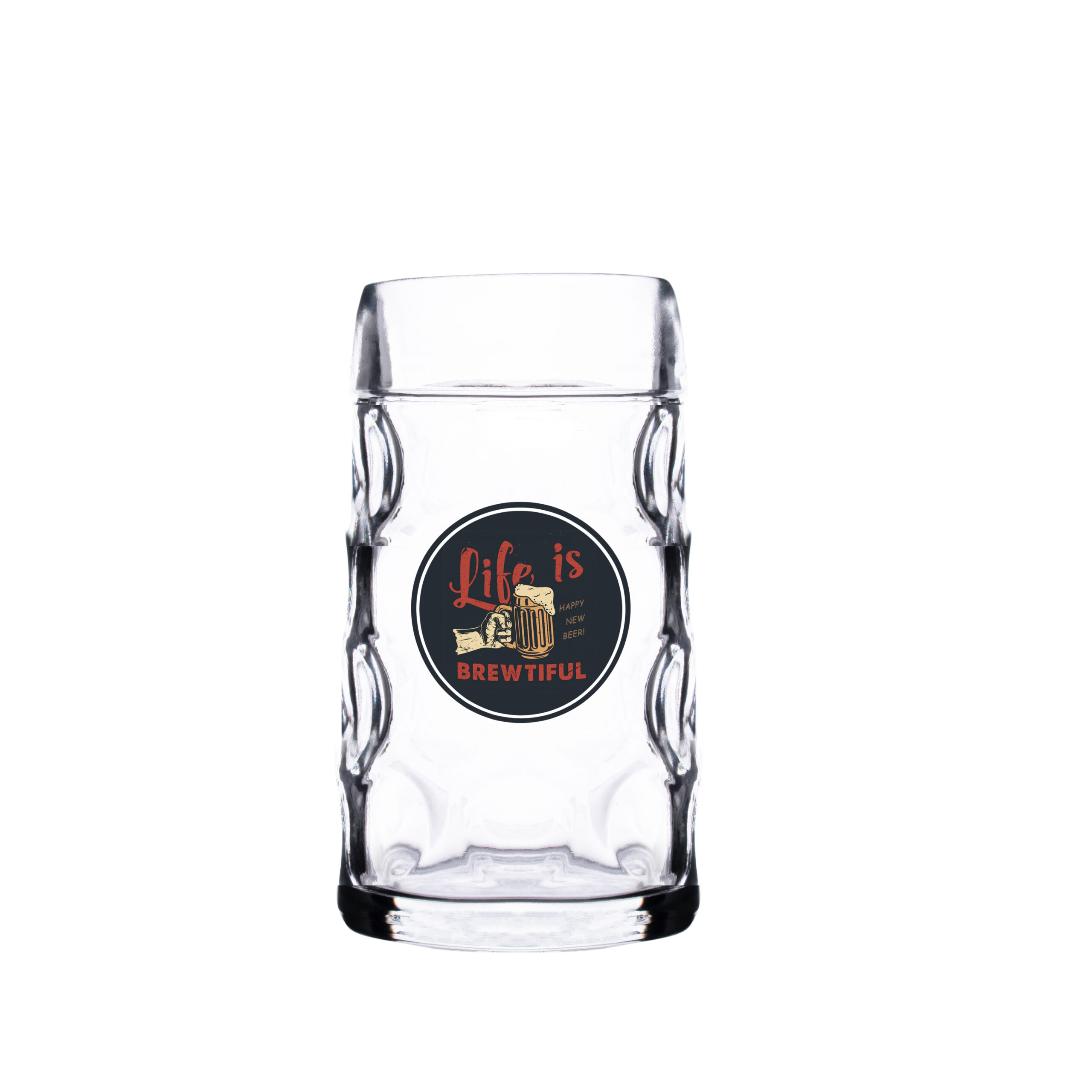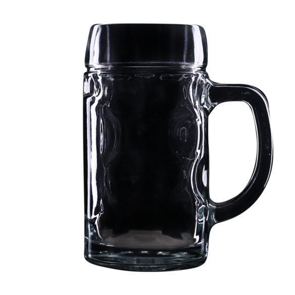 Ein solider und handlicher Bierkrug mit charakteristischen Vertiefungen in den Wänden. Die Vertiefungen verleihen dem goldenen Getränk im Inneren einen dreidimensionalen Effekt.
