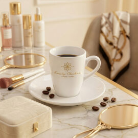 Klassische Tasse aus hochwertigem Porzellan. Mit einem ergonomisch geformten Henkel. Perfekt für Espresso.