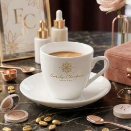 Eine Kaffeetasse in klassischer Form. Hergestellt aus hochwertigem Porzellan. Sie ist in zwei Voluminavarianten erhältlich.