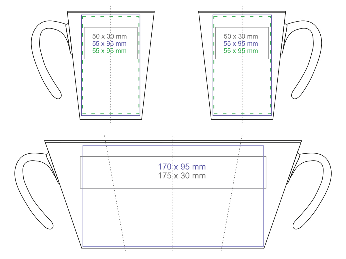 Eine originelle Tasse mit einem modernen „offenen“ Henkel. Mit 4 Innenfarben zur Auswahl und einem passenden Henkel. Die konische Struktur ist ideal für große Dekorationen.