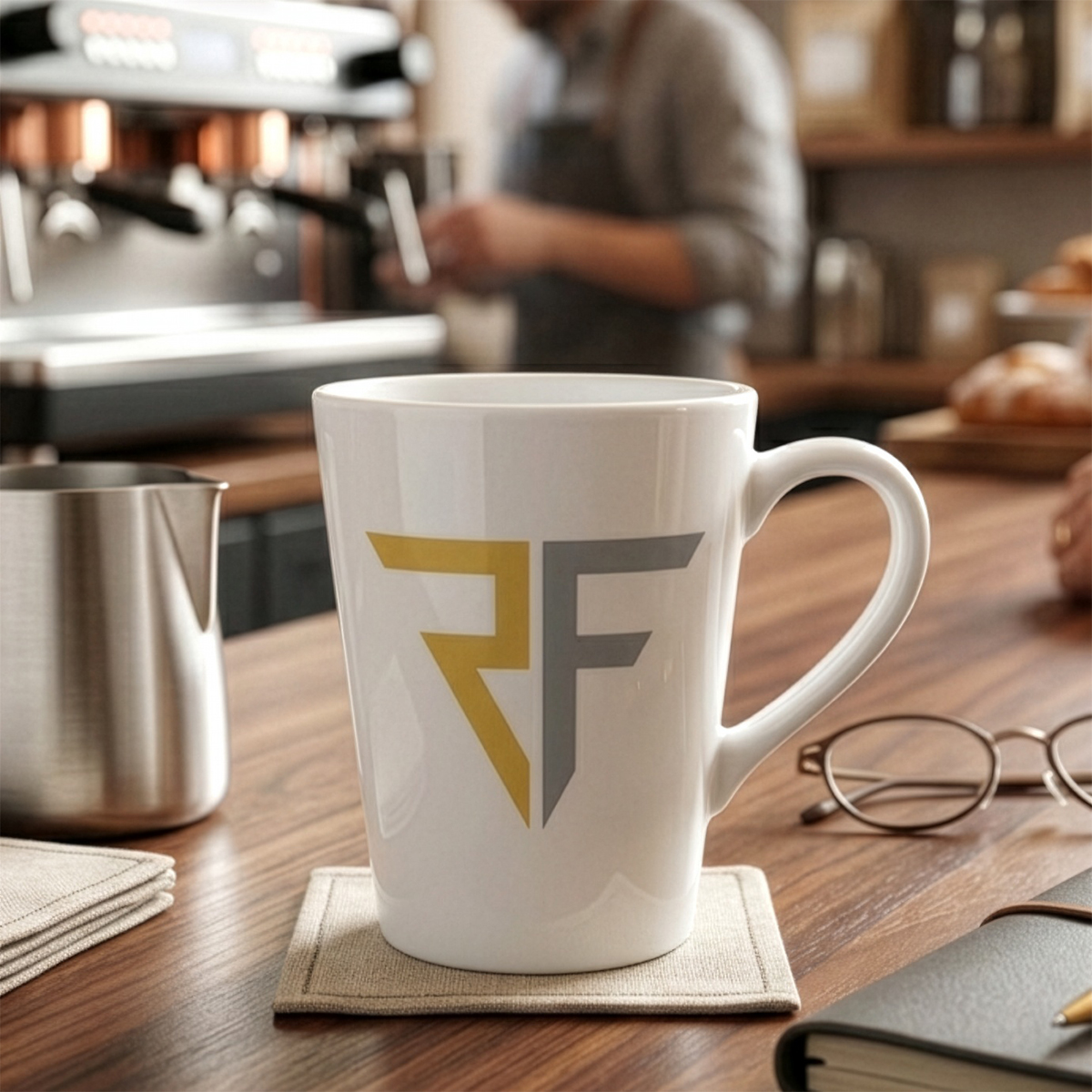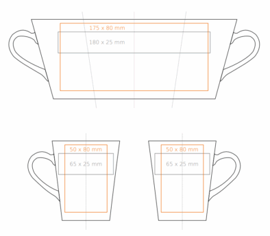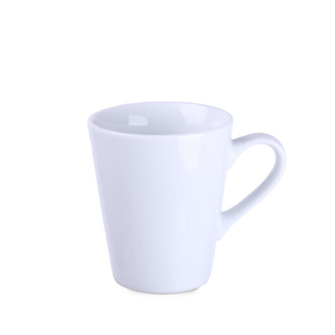 Ein beliebter Becher mit einer raffinierten Form. Hergestellt aus hochwertigem Porzellan. Durch seine klassische Form ist er sehr bequem im täglichen Gebrauch, und seine geraden Wände bieten großartige Möglichkeiten für die Anbringung von Dekorationen.