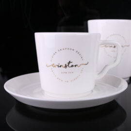 Exklusive Tasse aus Porzellan höchster Qualität – Fine Bone China. Dünnwandiges Modell mit ergonomischem Henkel. Sie macht Ihr tägliches Kaffeetrinkritual einzigartig.
