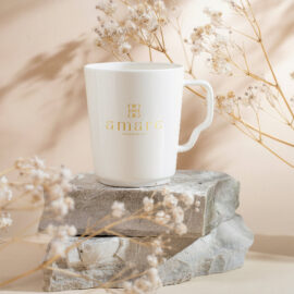 Ein exklusives Modell mit einer interessanten Form. Hergestellt aus schönem, hochwertigem Porzellan – Fine Bone China. Extrem leicht mit dünnen und geraden Wänden, die das Branding perfekt zur Geltung bringen.