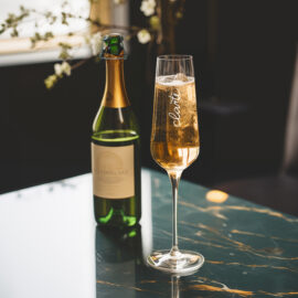 Ein dezentes Glas für Champagner. Hergestellt aus dünnem, hochwertigem europäischen Glas, macht es jeden Schluck des prickelnden Getränks zu einem einzigartigen Erlebnis. Es bietet interessante Farb- und Dekorationsmöglichkeiten.