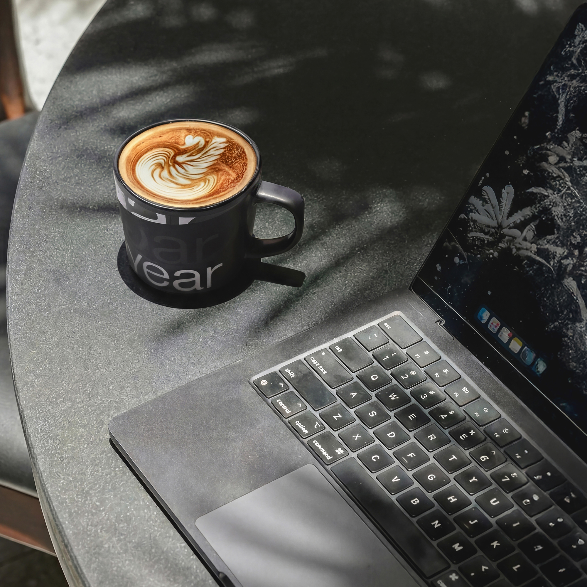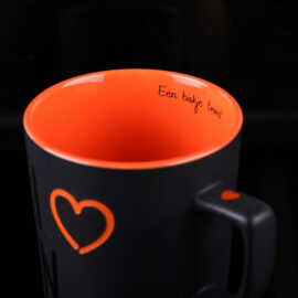 Ein schicker, mattschwarzer Becher mit moderner Form. Er bietet großartige Möglichkeiten zur individuellen Gestaltung.