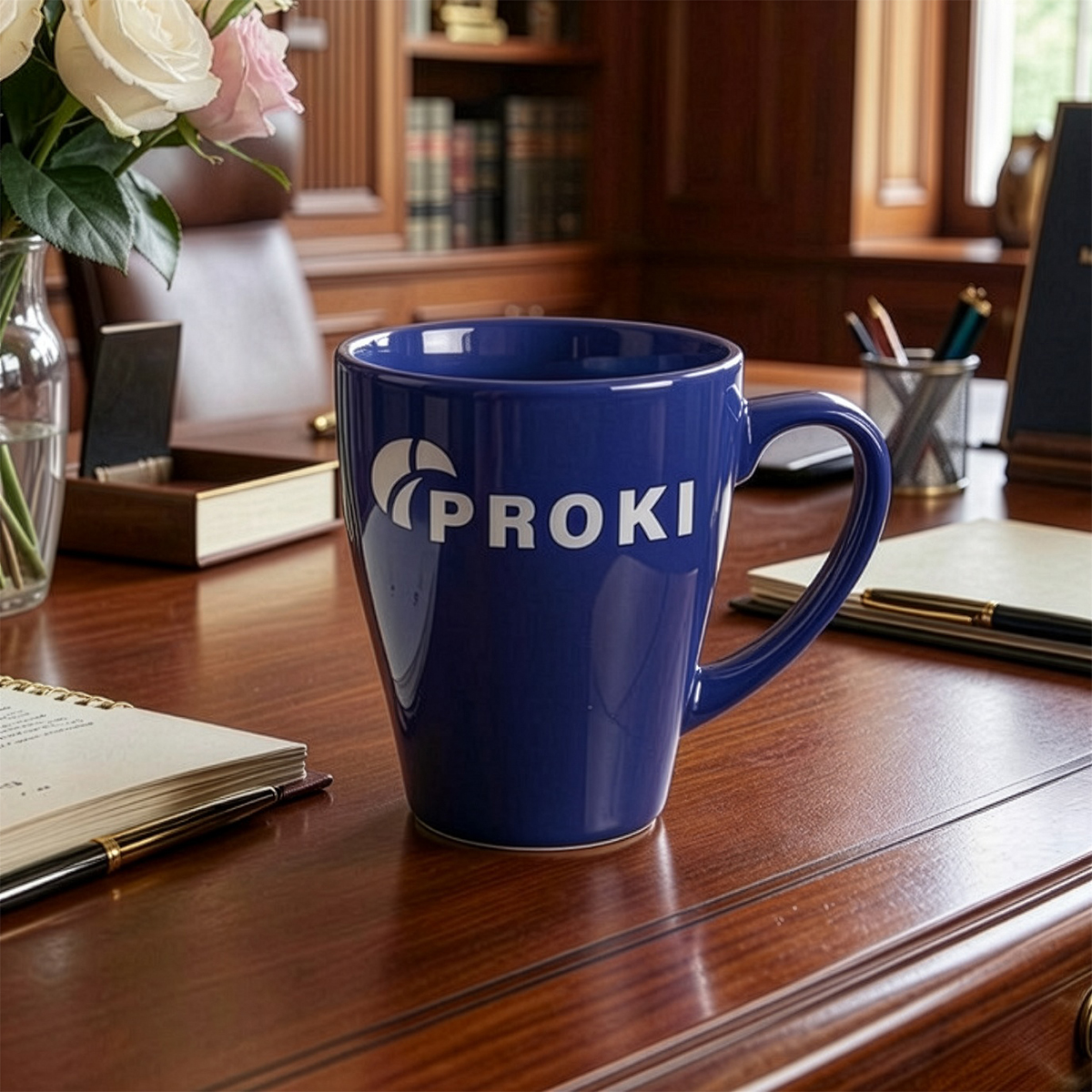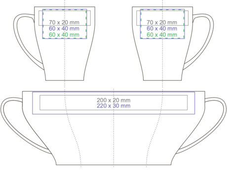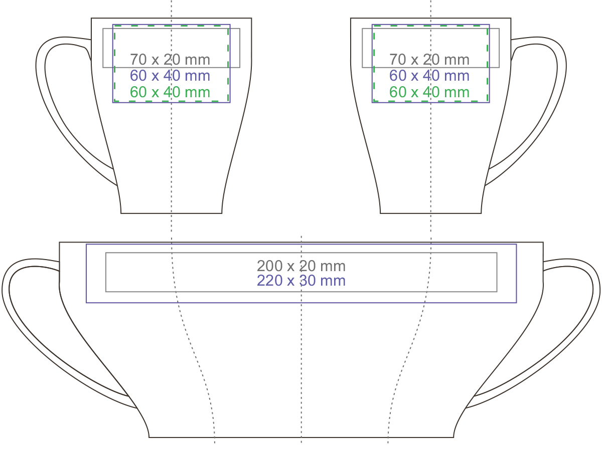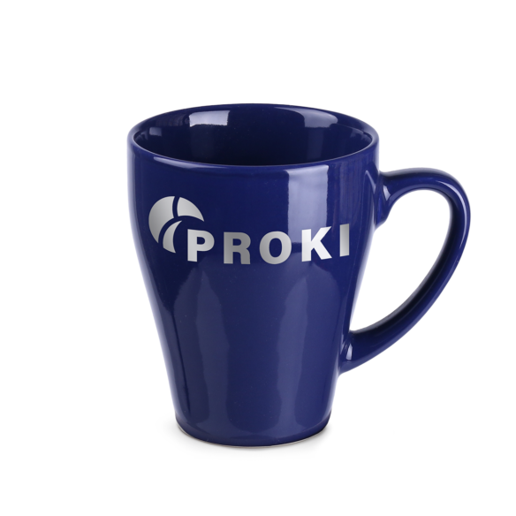Ein stilvoller Becher mit einer Form, die sich nach oben ausdehnt. Er hat einen praktischen und bequemen Griff. Erhältlich in zwei Farbvarianten.