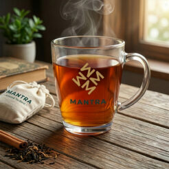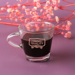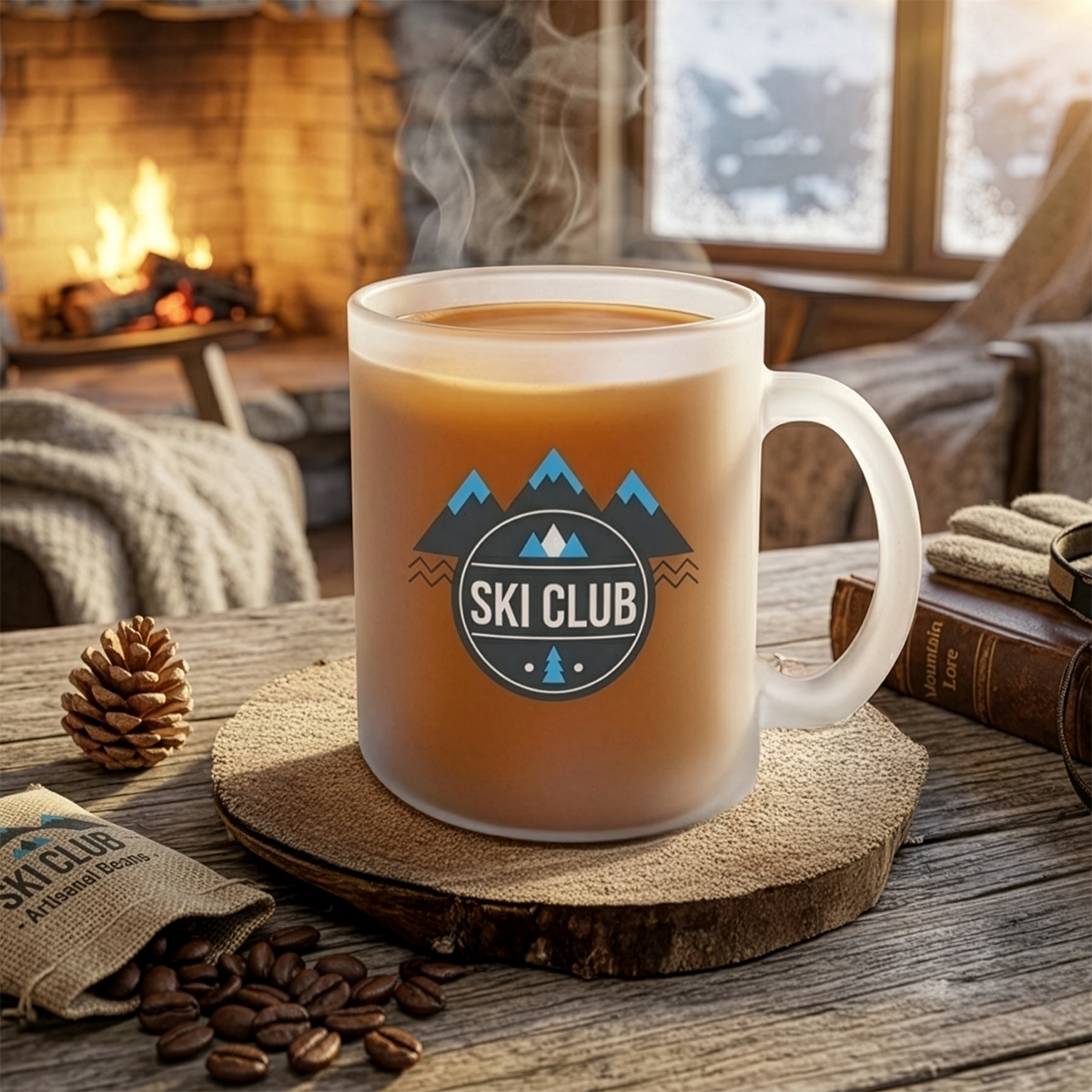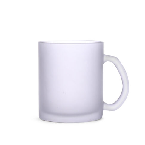 Ein beliebter Becher aus mattiertem Glas. Er hat eine einfache, klassische Form und eine große Fläche für Dekorationen.