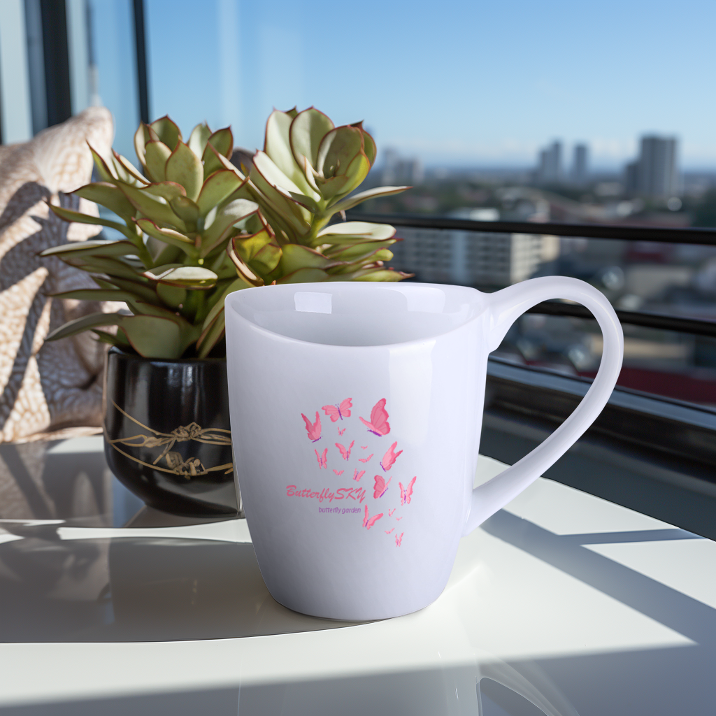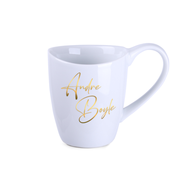 Eleganter Becher aus hochwertigem Porzellan. Er hat einen großen, passenden Henkel.