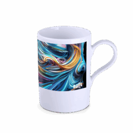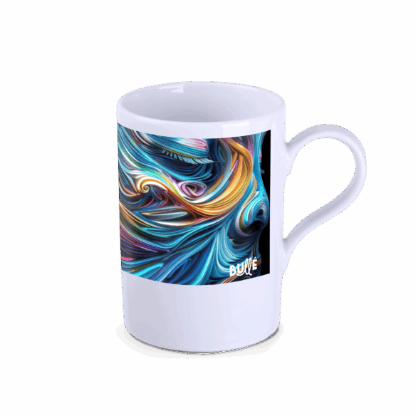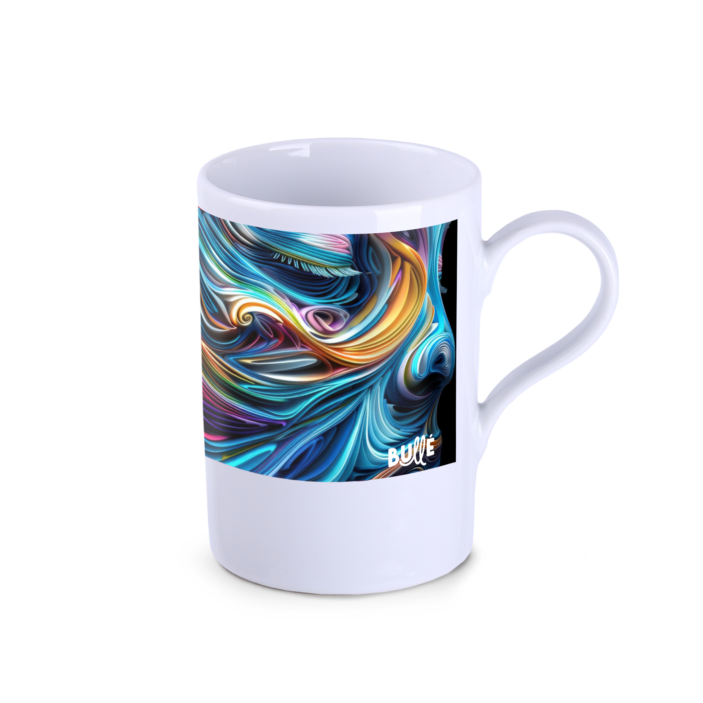 Ein interessanter Porzellanbecher mit einer einfachen zylindrischen Form. Er hat einen modischen, ergonomischen Griff. Produziert in Europa.