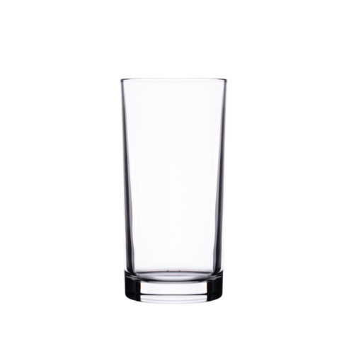 Ein schlankes Glas mit hohen geraden Wänden. Es hat einen dicken, stabilen Boden. Hergestellt aus Glas europäischer Herkunft.