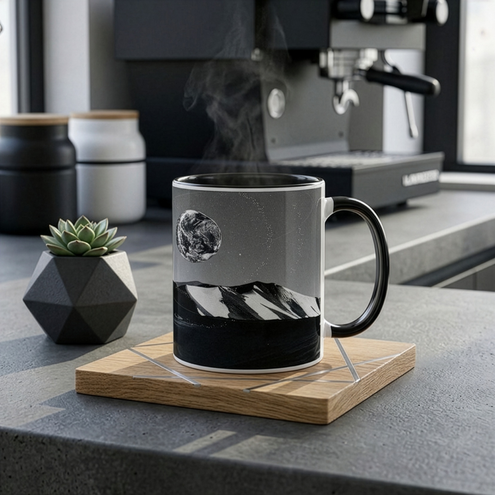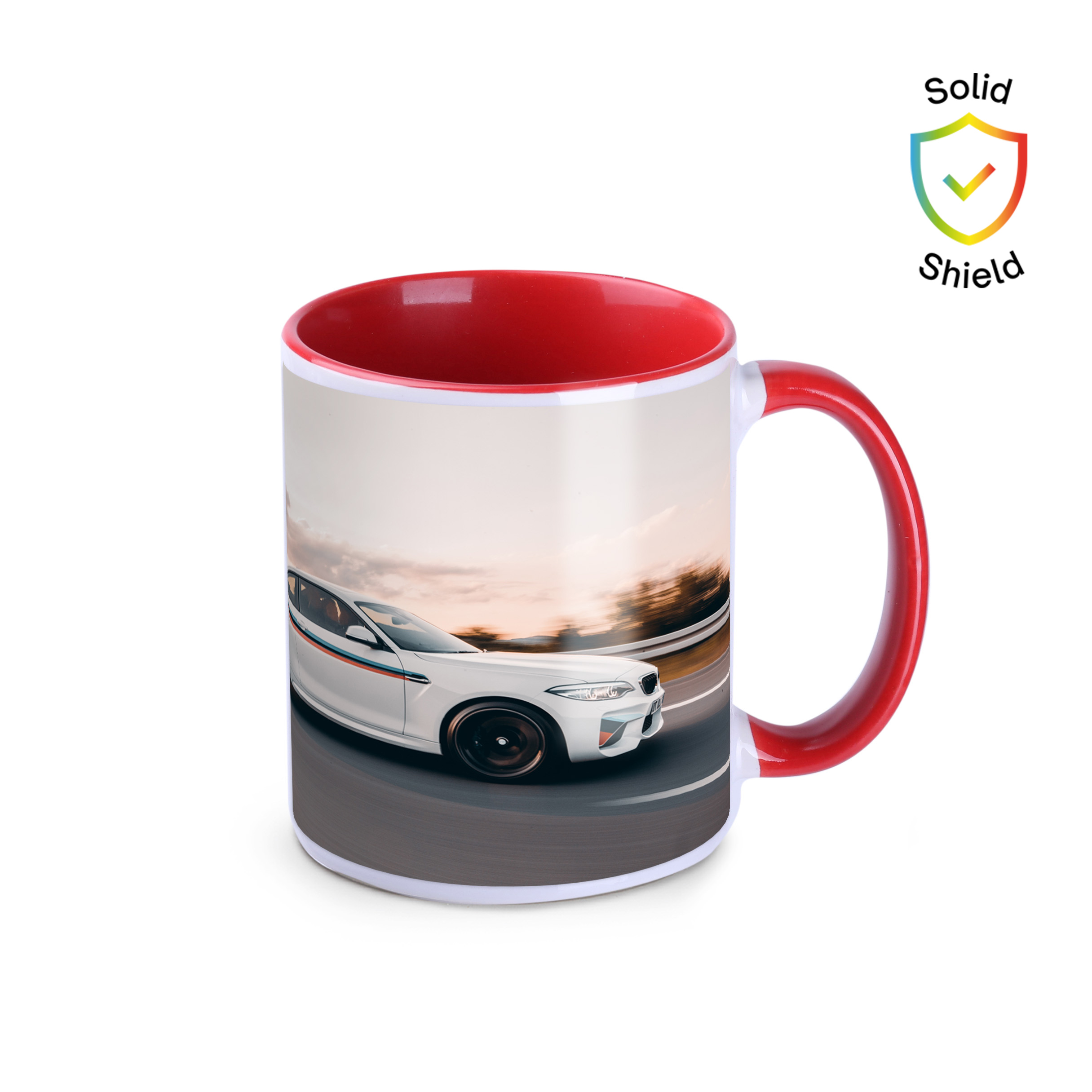 Ein origineller Sublimationsbecher mit unverwechselbaren Farben. Er hat eine farbige Innenseite in verschiedenen Farbtönen und einen passenden farbigen Henkel. Er kann in fotografischer Qualität bedruckt werden.