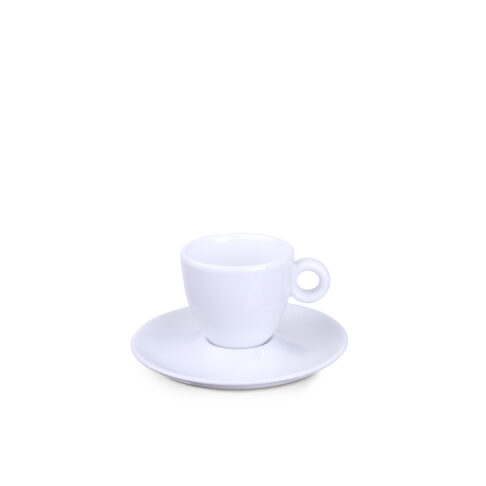 Eine elegante Tasse, die sich durch ihren markanten runden Henkel auszeichnet.