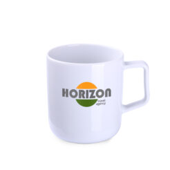 Die dickwandige Tasse besteht aus europäischem Porzellan. Sie hat einen eleganten runden Henkel. Sie ist in 3 Fassungsvermögensvarianten erhältlich.