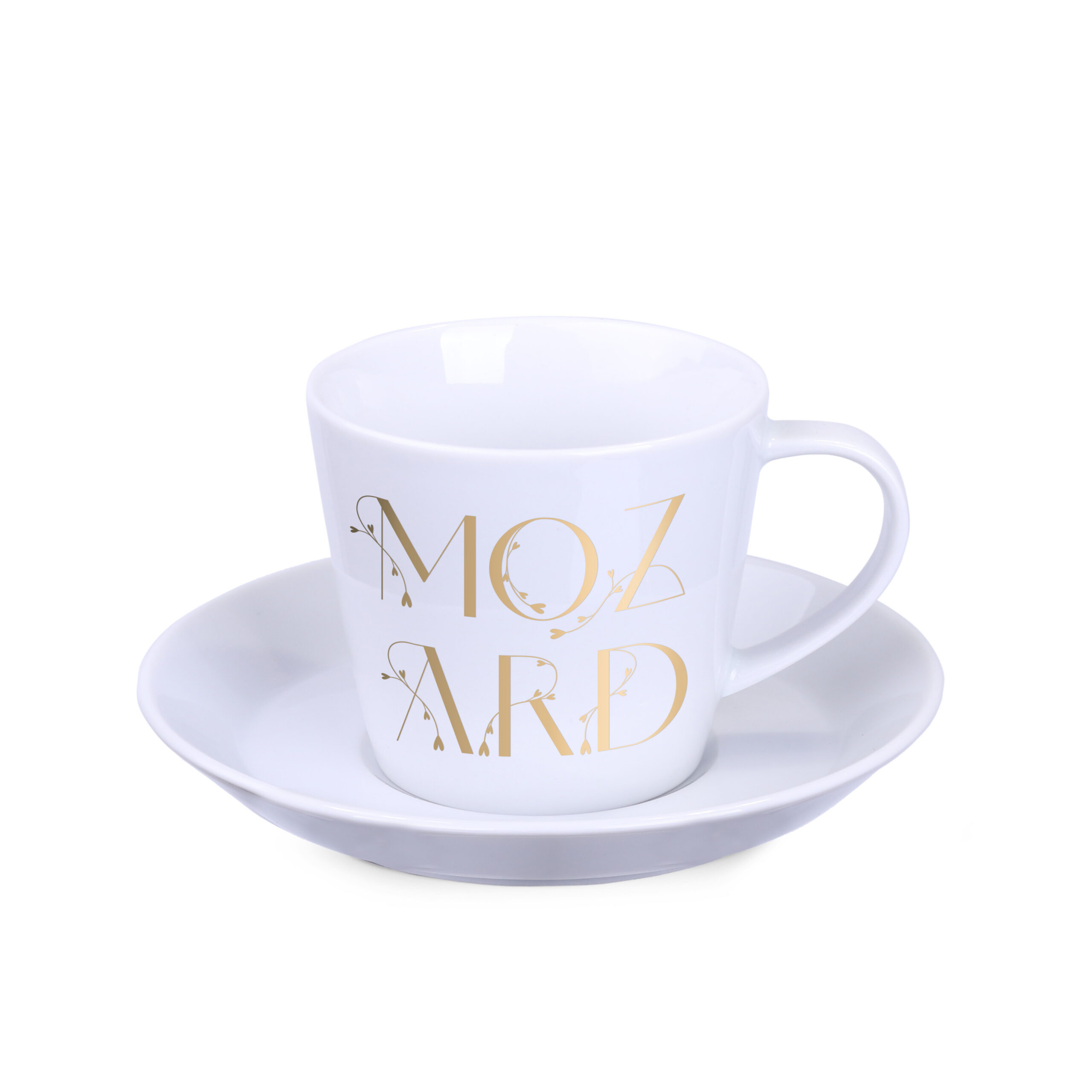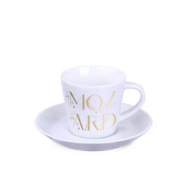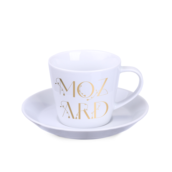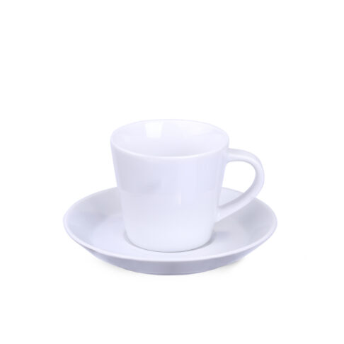 Eine leicht zu handhabende Tasse mit geraden, sich leicht verbreiternden Wänden. Charakteristische Untertasse mit geschwungenen Rändern. Das Produkt hat einen glasierten Rand.