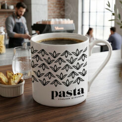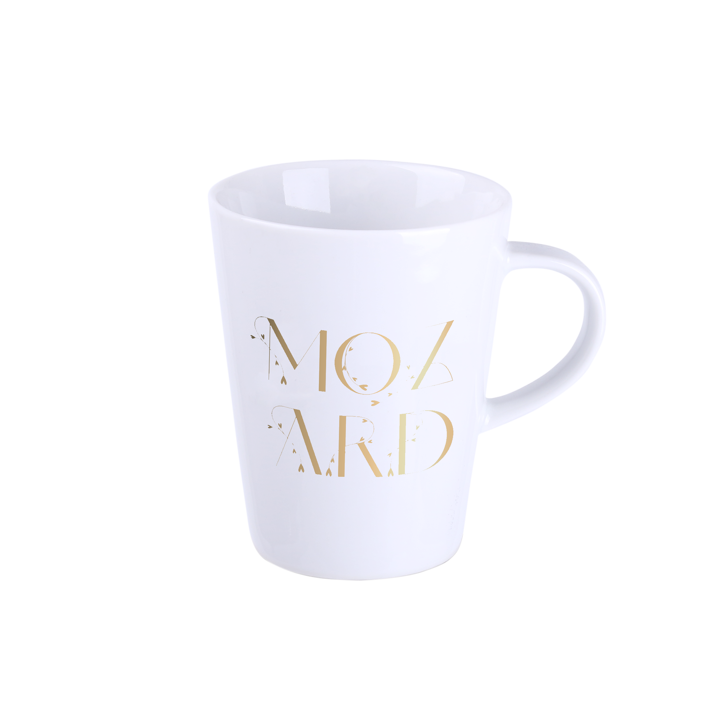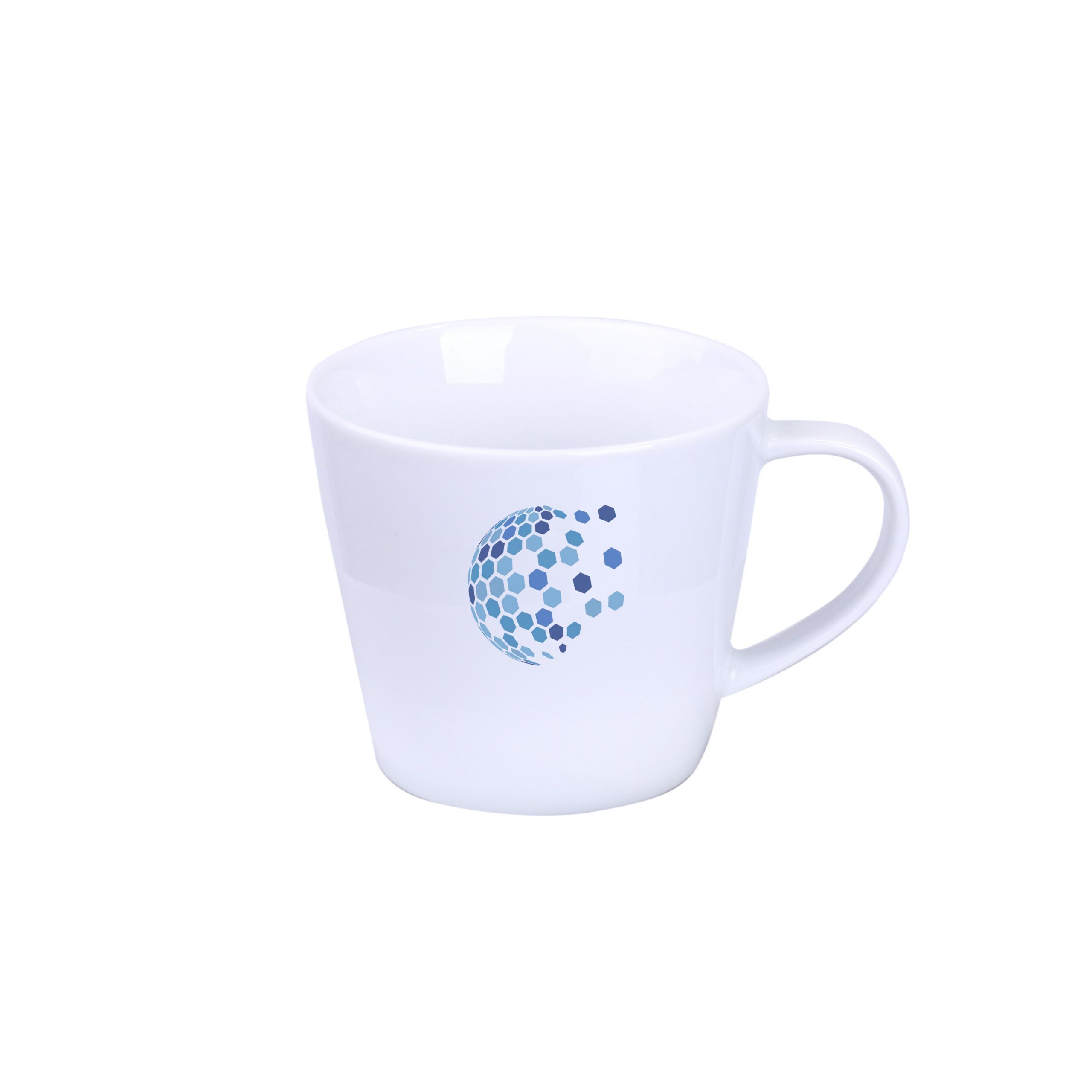 Ein Becher mit einer einfachen, klassischen Form. Hergestellt aus europäischem Porzellan. Sie hat einen ergonomischen Griff. Erhältlich in 3 verschiedenen Fassungsvermögen.