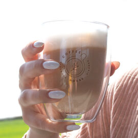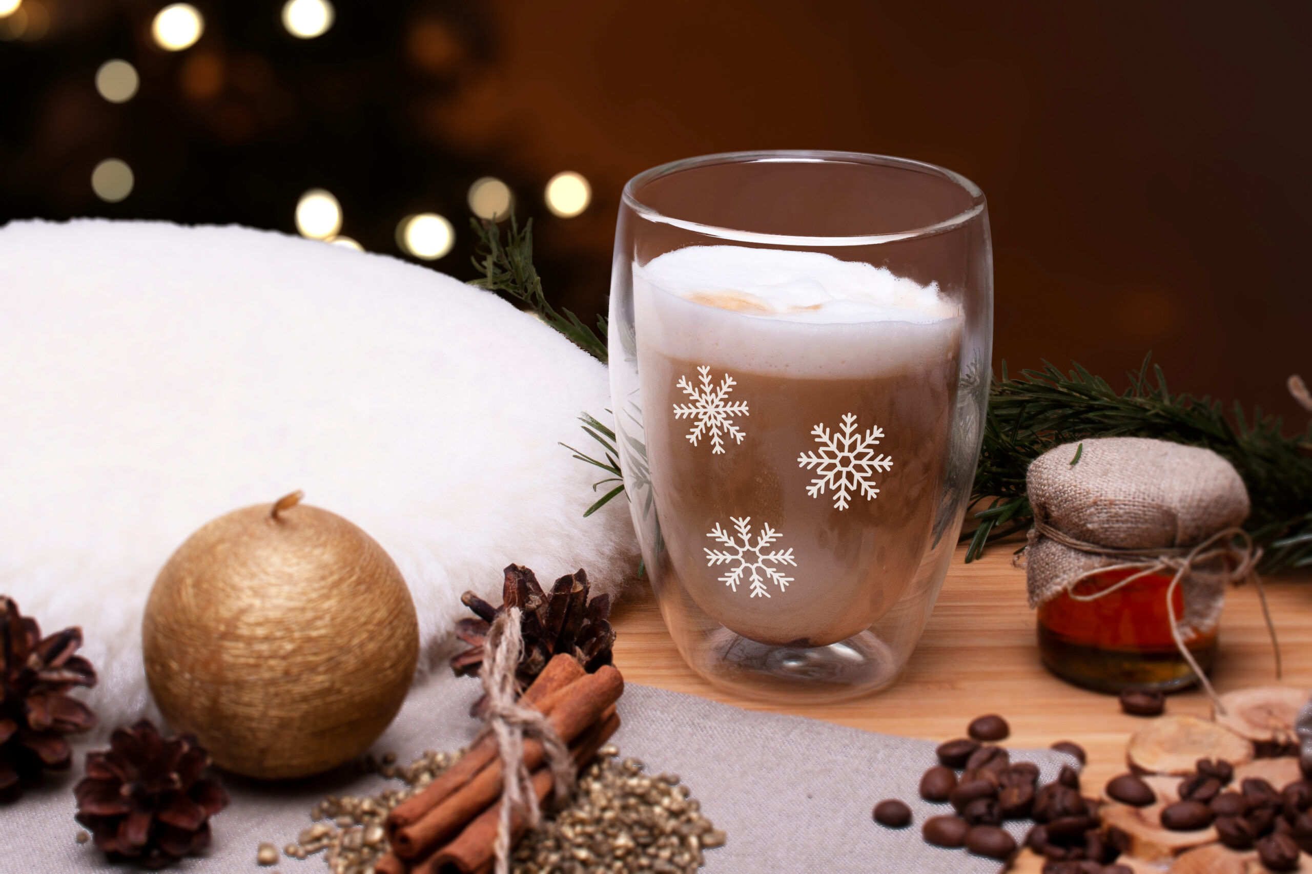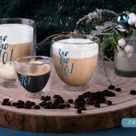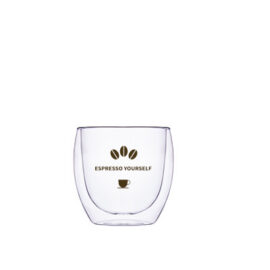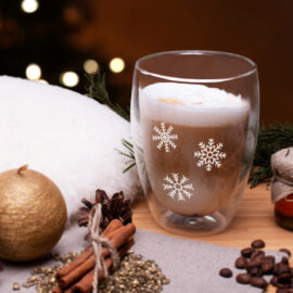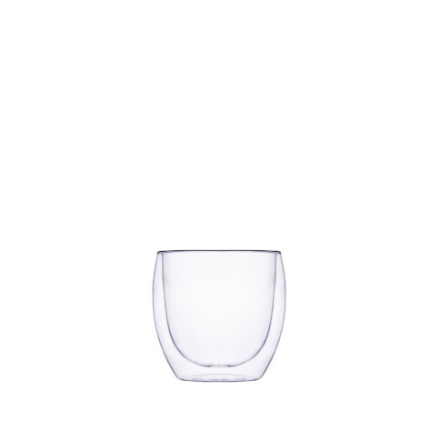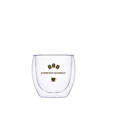 Ungewöhnliches Glas mit Doppelwand. Ein beliebtes Glasmodell in zwei neuen Größen. Das doppelwandige Glas verleiht dem Getränk einen verblüffenden Schwebeeffekt und bringt die darauf angebrachte Dekoration wunderbar zur Geltung.
