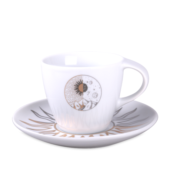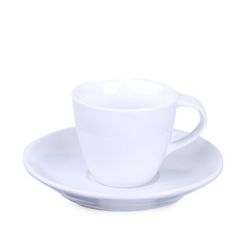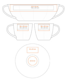 Ein dezenter Porzellanbecher mit einem attraktiven Henkel und umfangreichen Dekorationsmöglichkeiten.